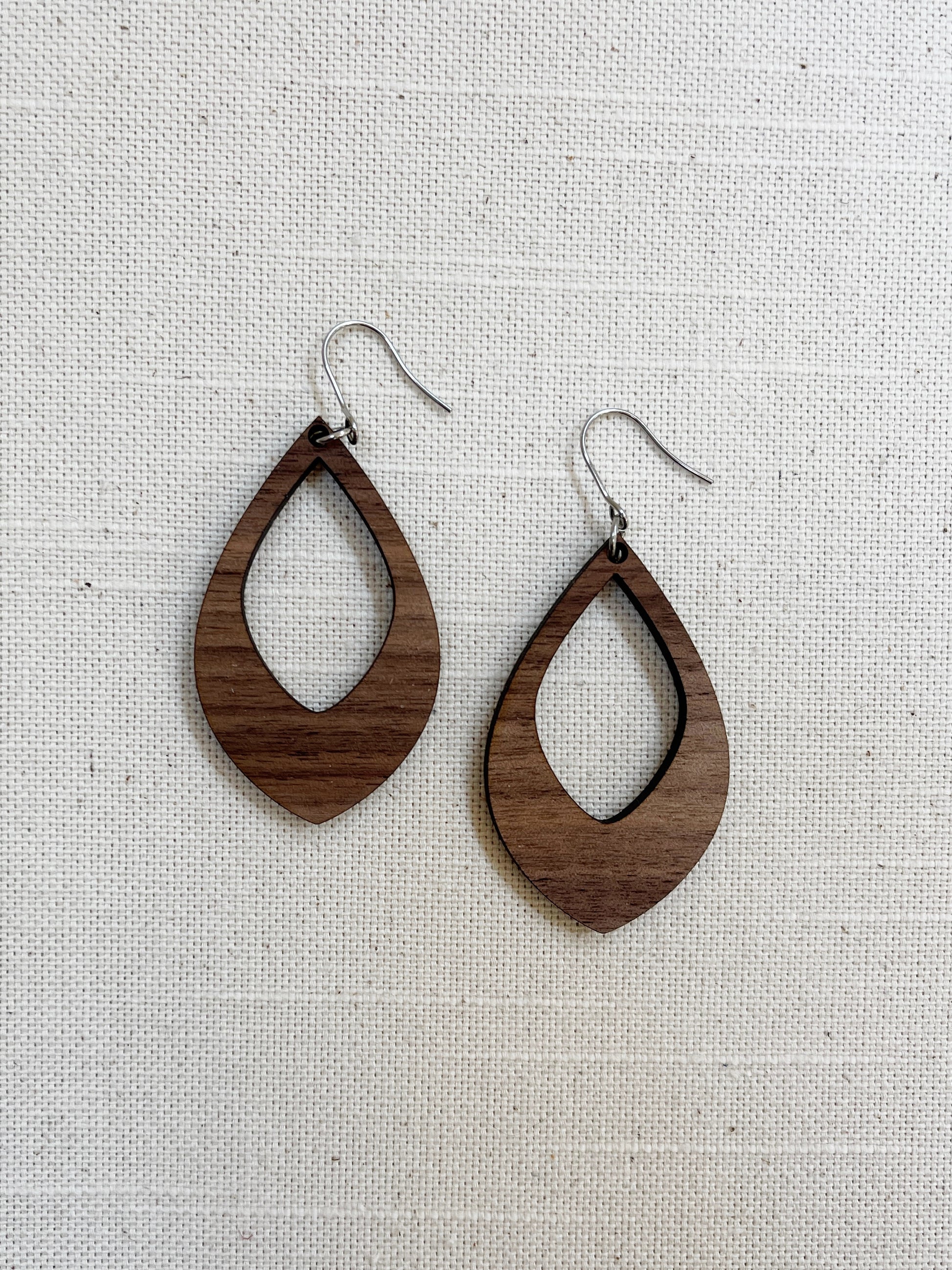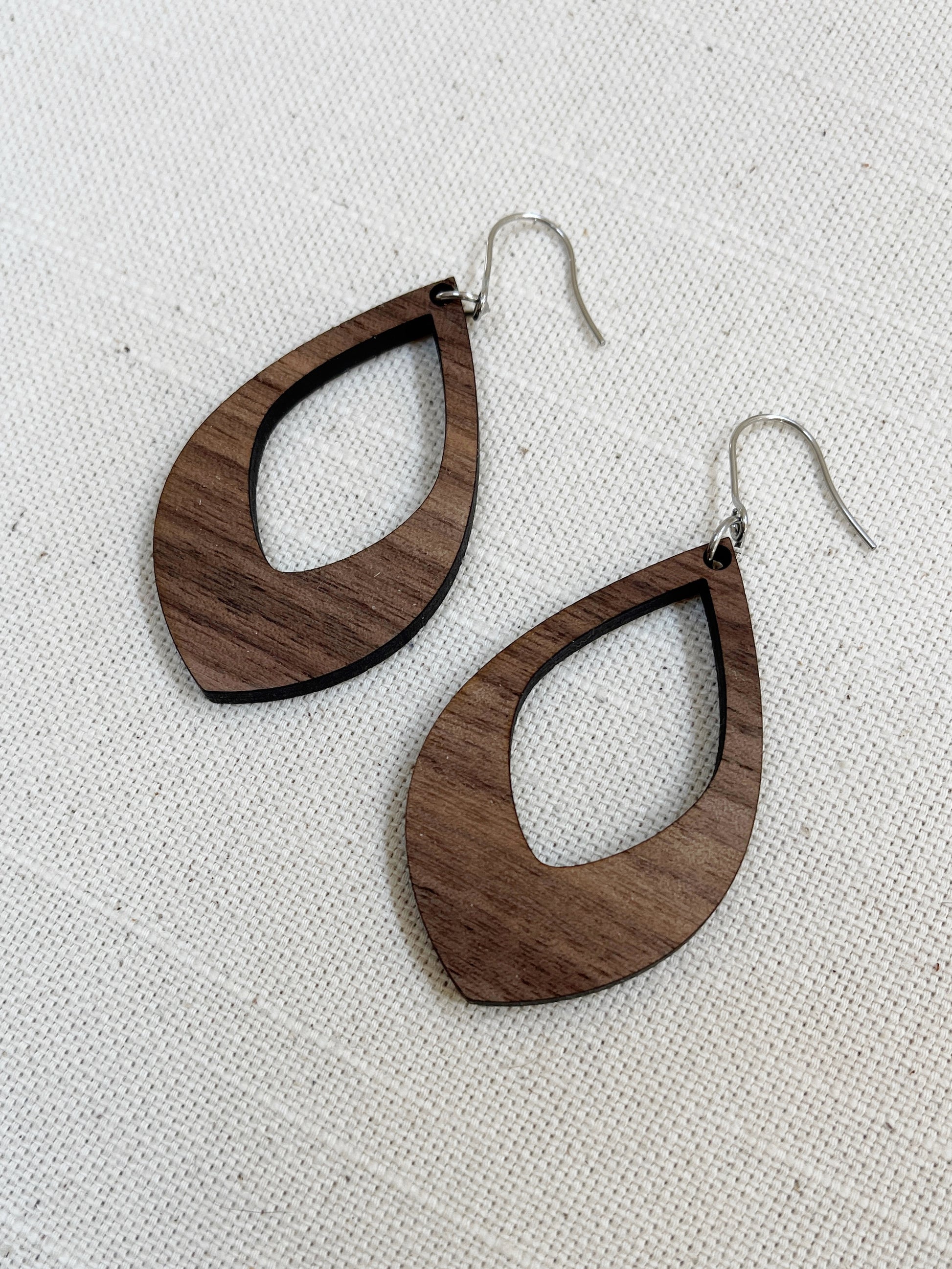Laser cut Walnut plywood earrings.