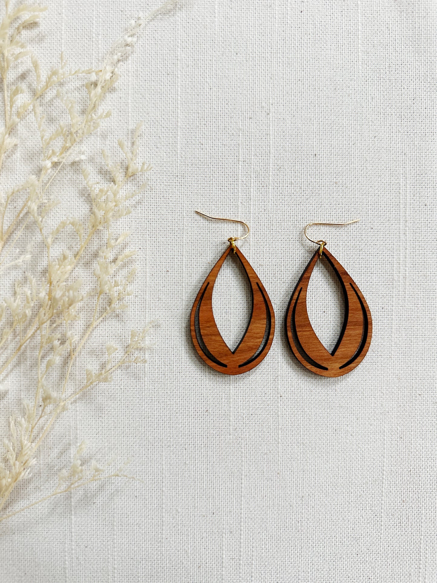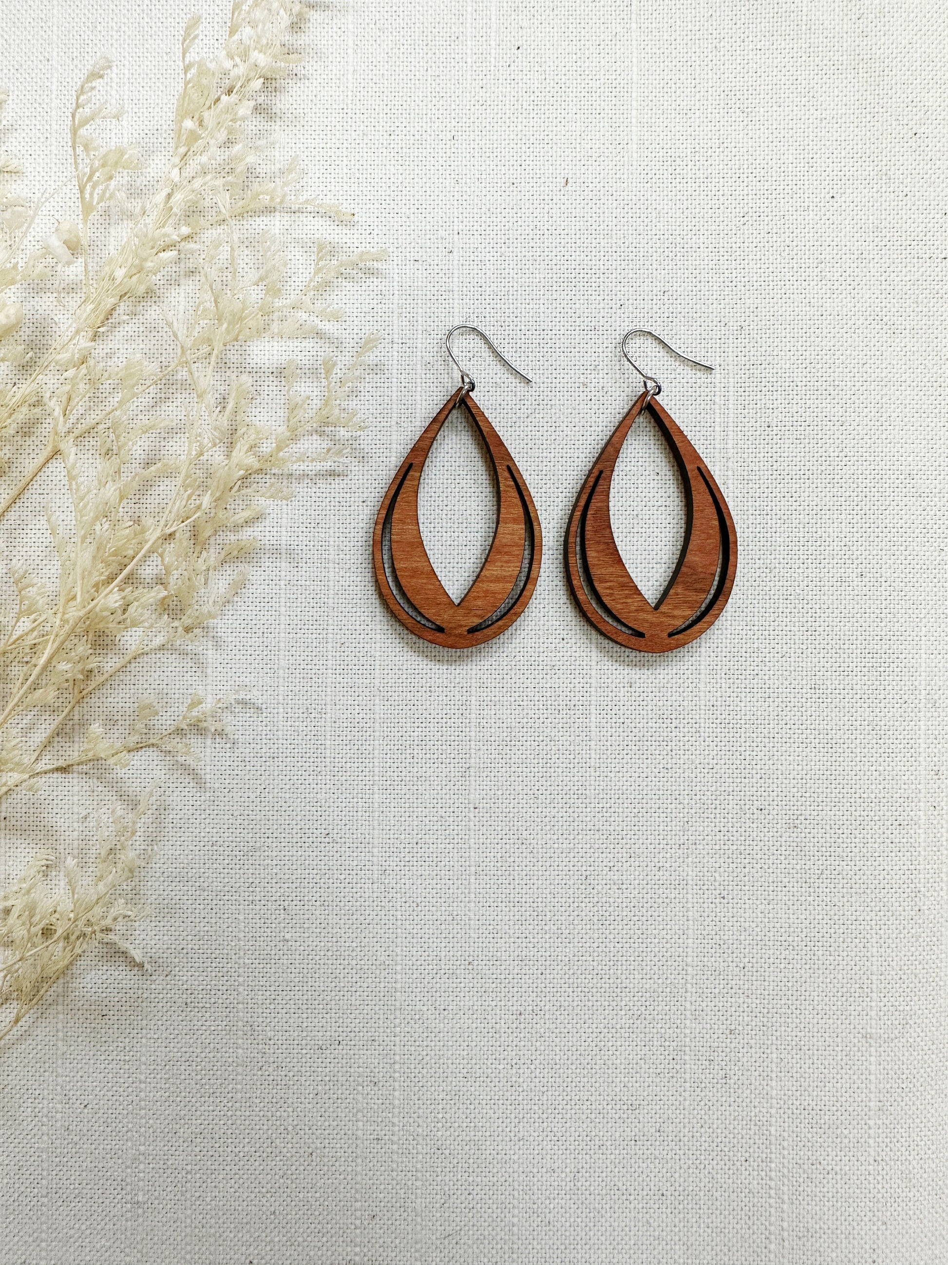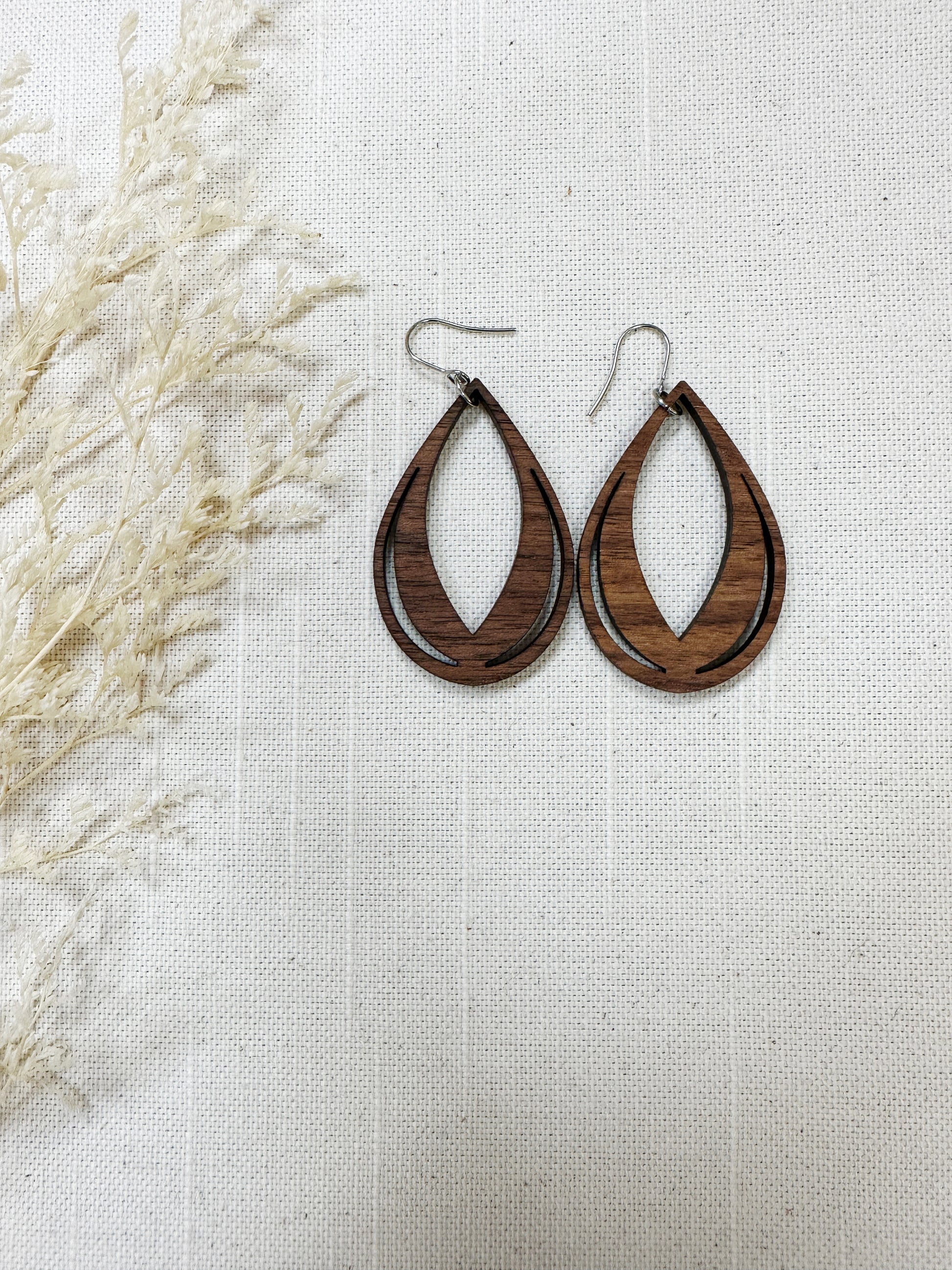The perfect pair of organic wooden earrings that are laser cut from cherry or walnut plywood. These earrings offer a unique and natural touch to any outfit.