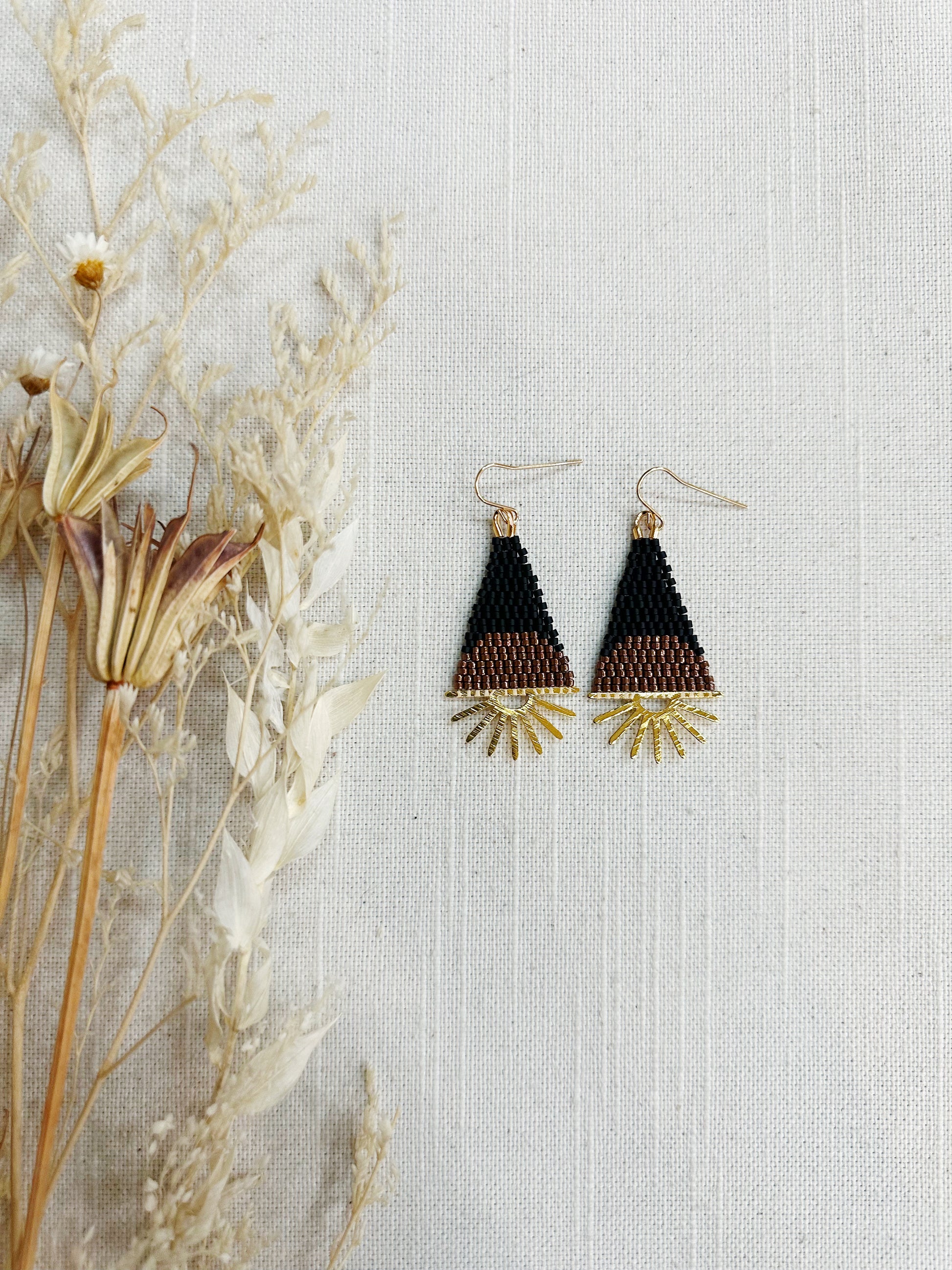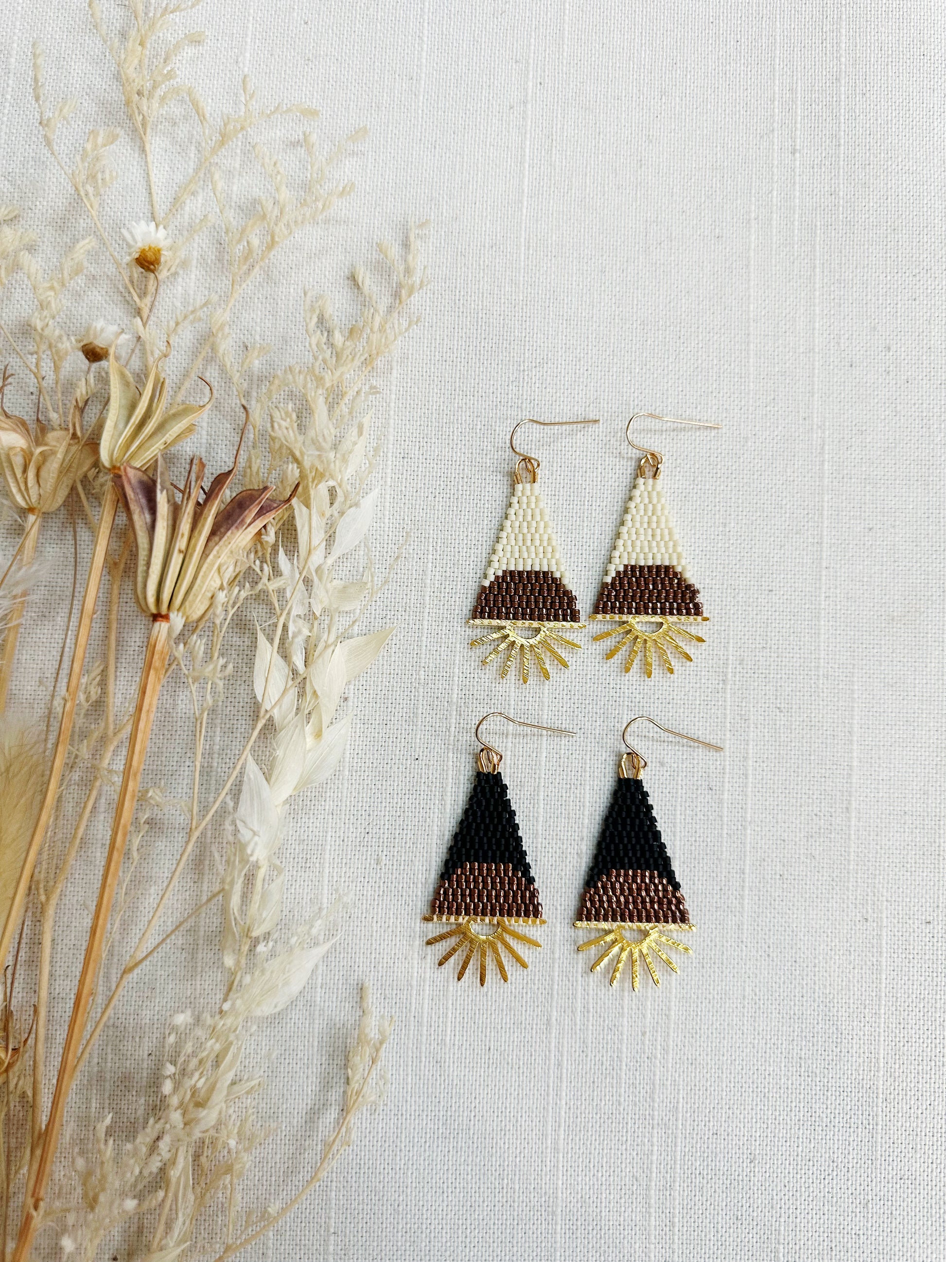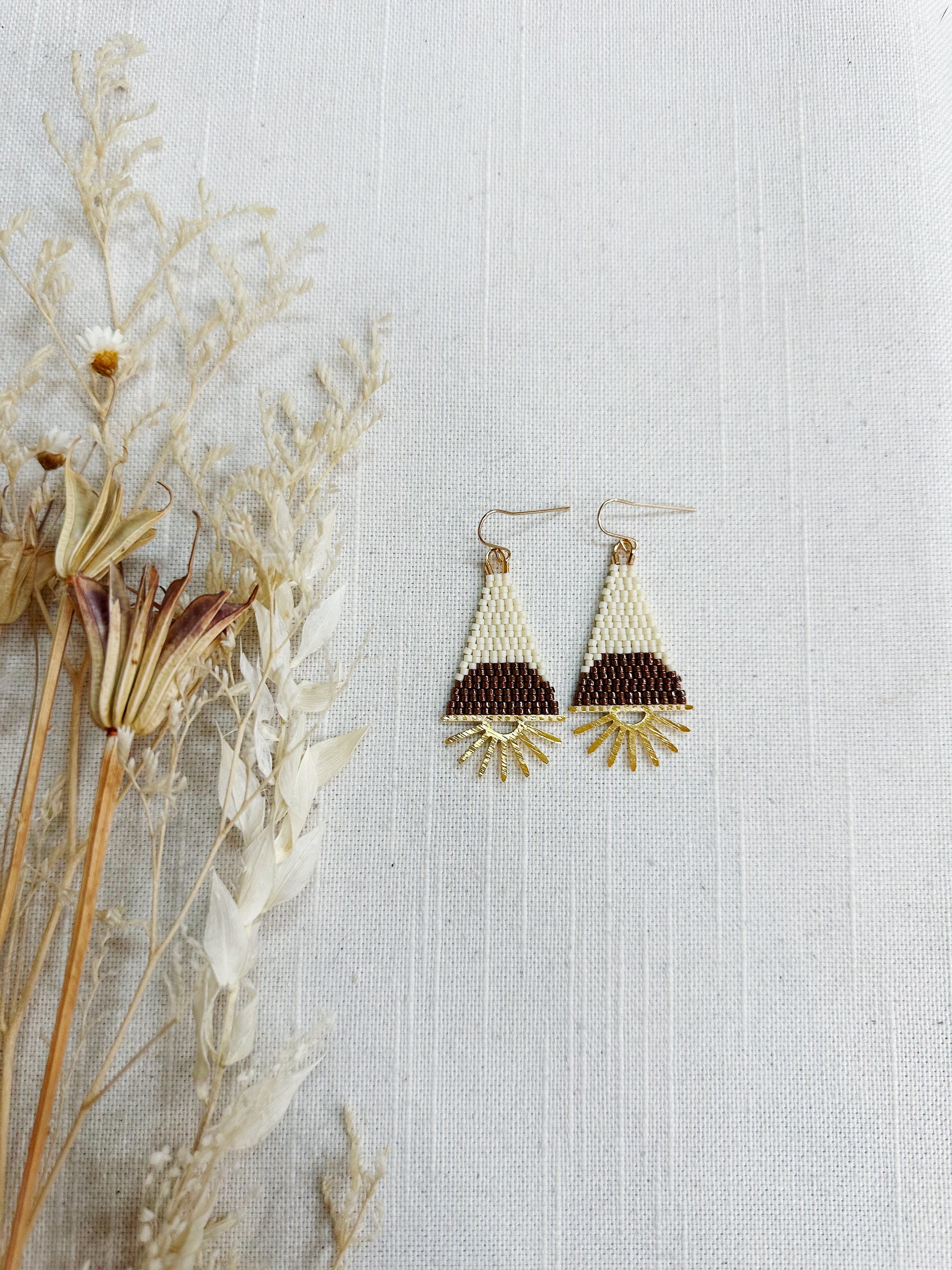 Half sun beaded earrings on a brass sun flare finding.