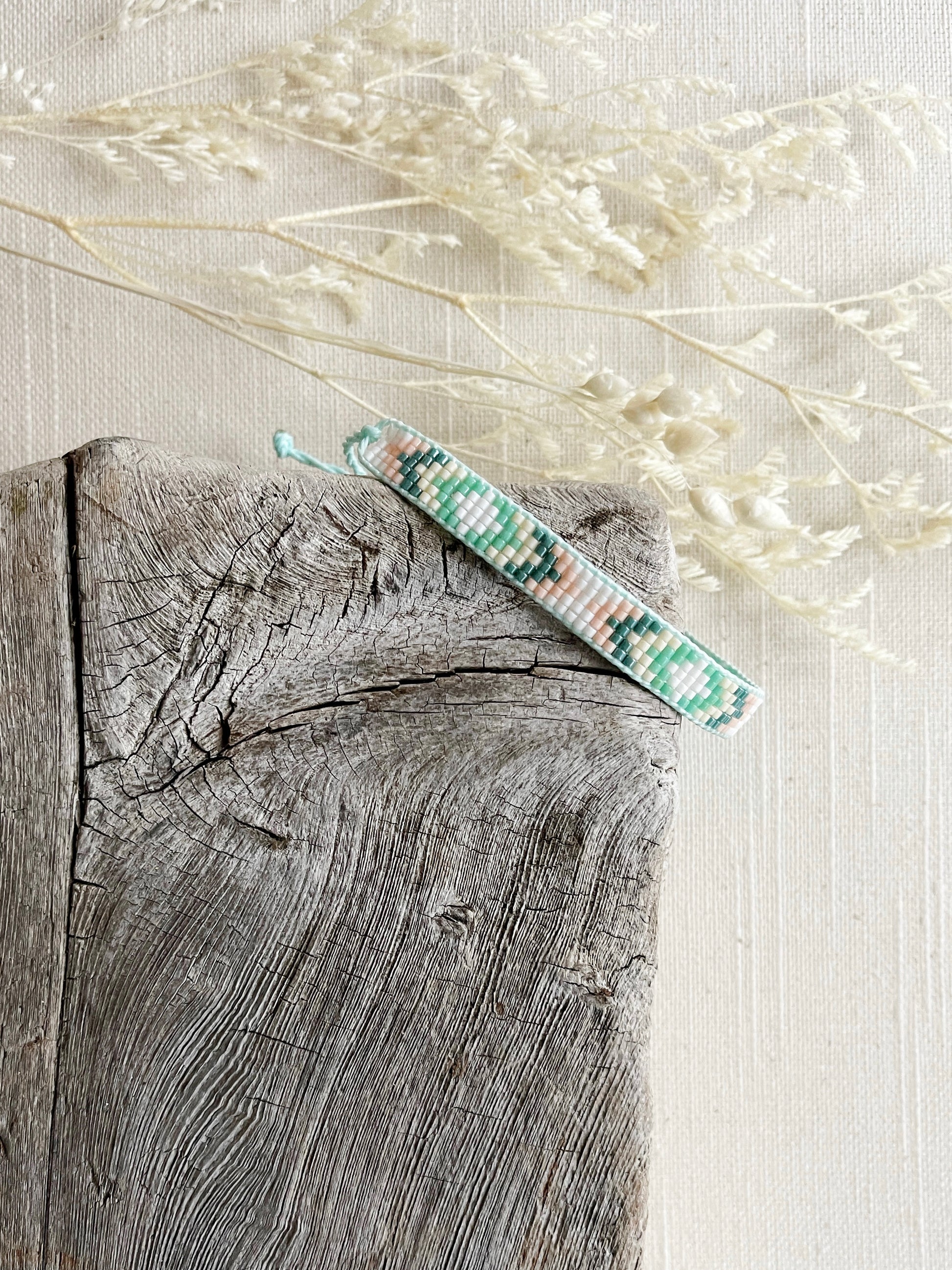Loom woven bracelet with Delica beads and a waxed polyester cord.