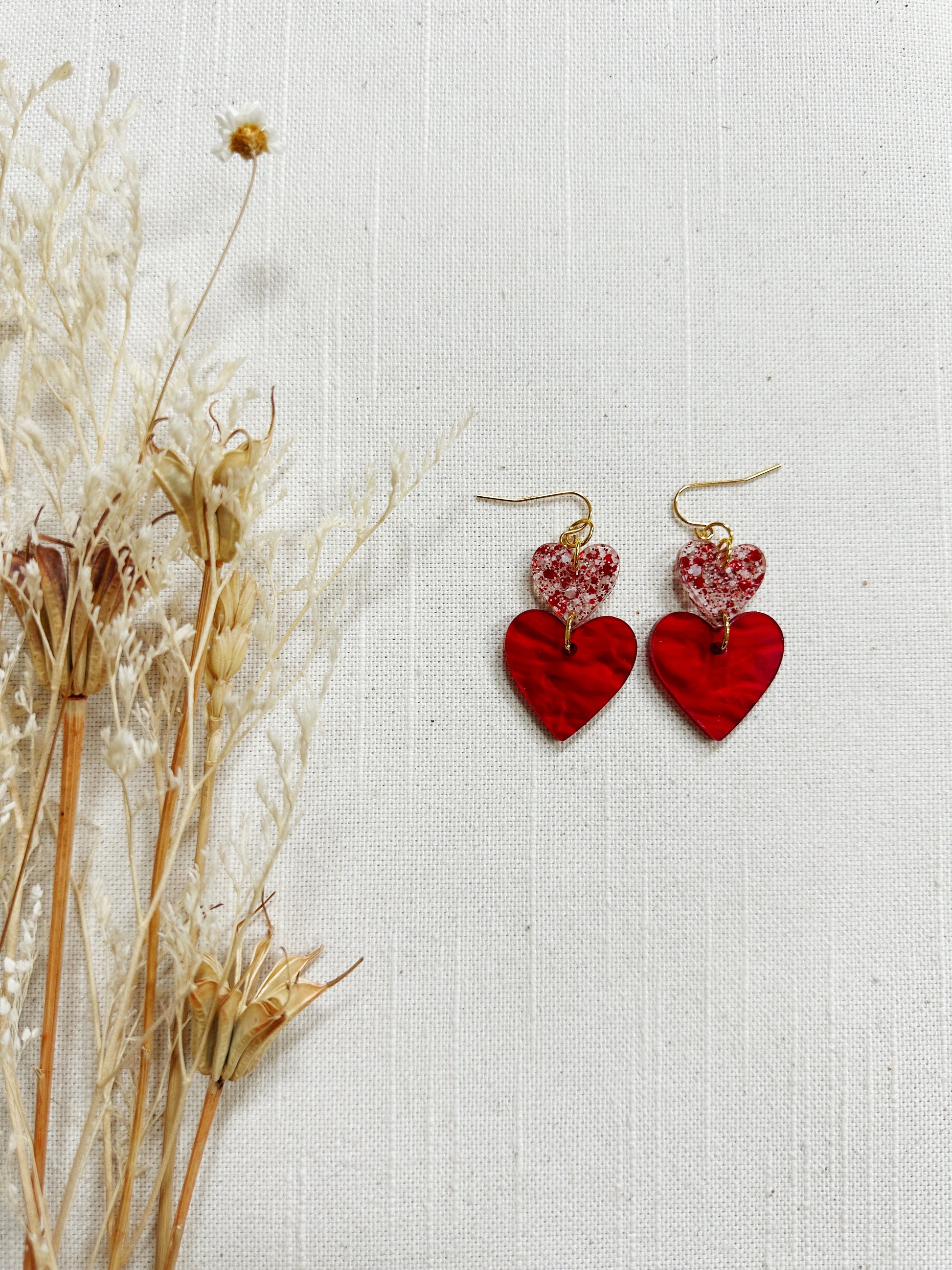 Double heart dangle with two perfect hearts, one larger than the other.