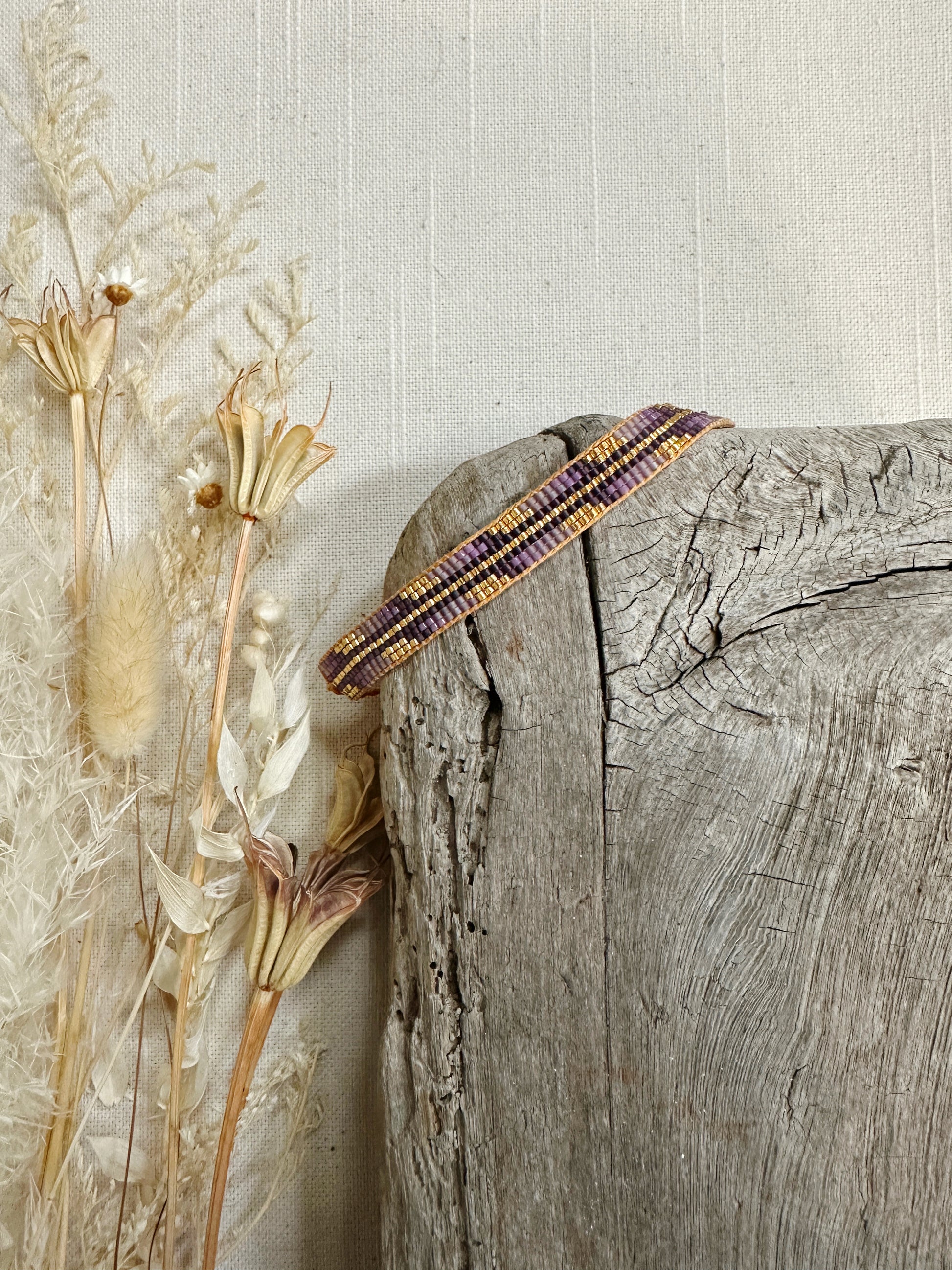 Loom woven bracelet with Delica beads and a waxed polyester cord.