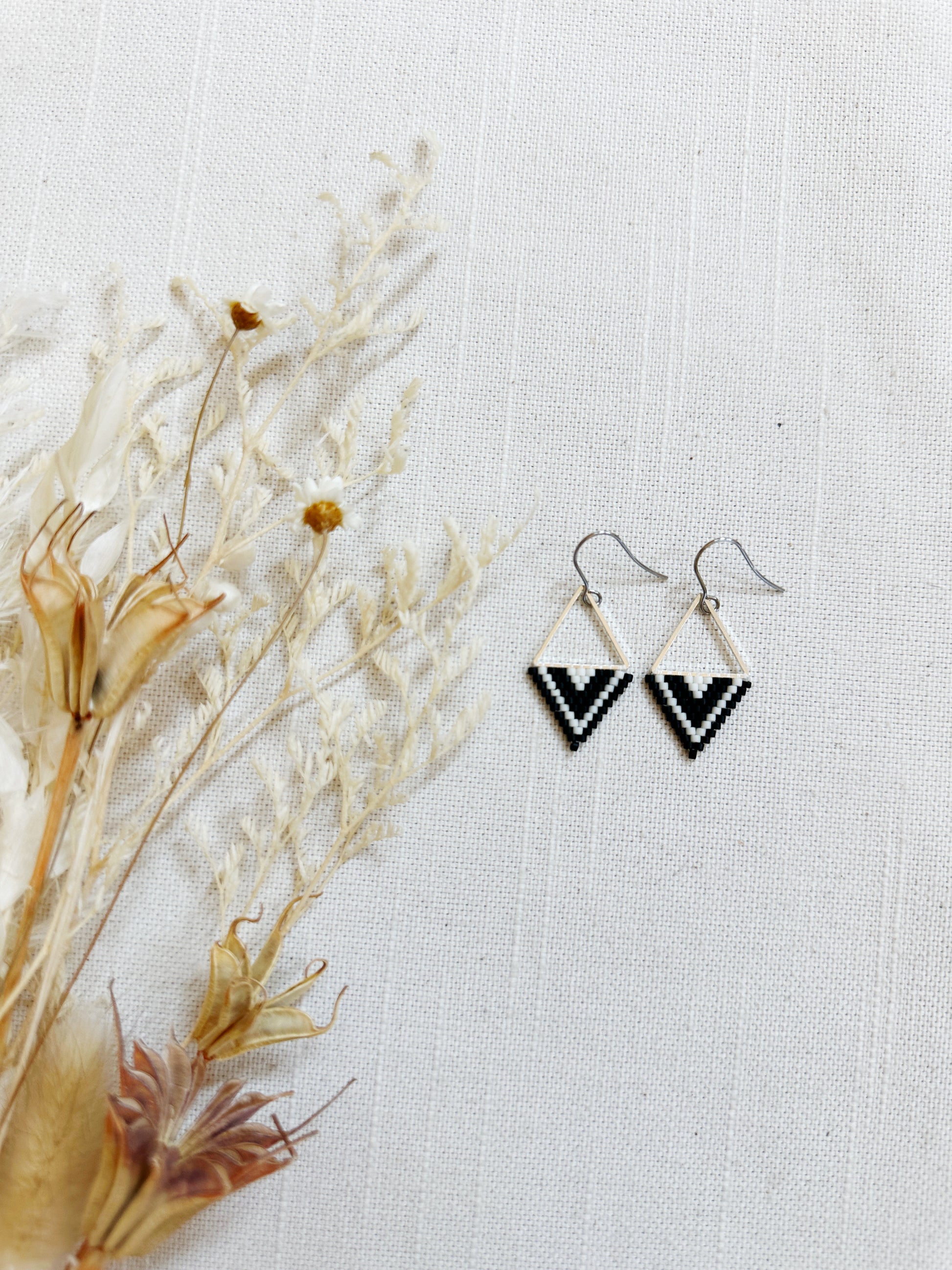 Ear Hook is gold filled. 316L Stainless Steel on Silver Plated Triangles