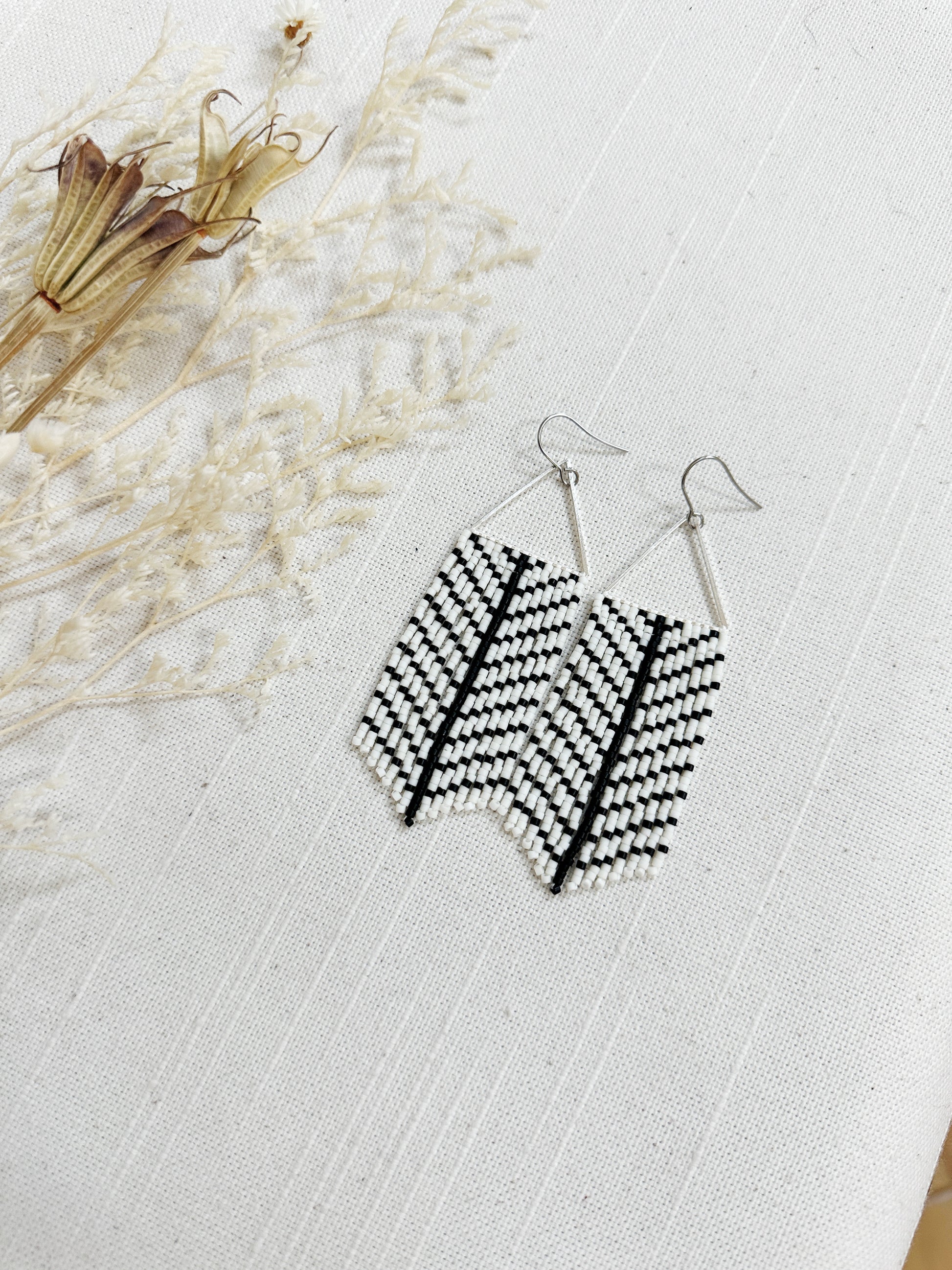 These black and white feather fringe earrings are the perfect everyday style.
