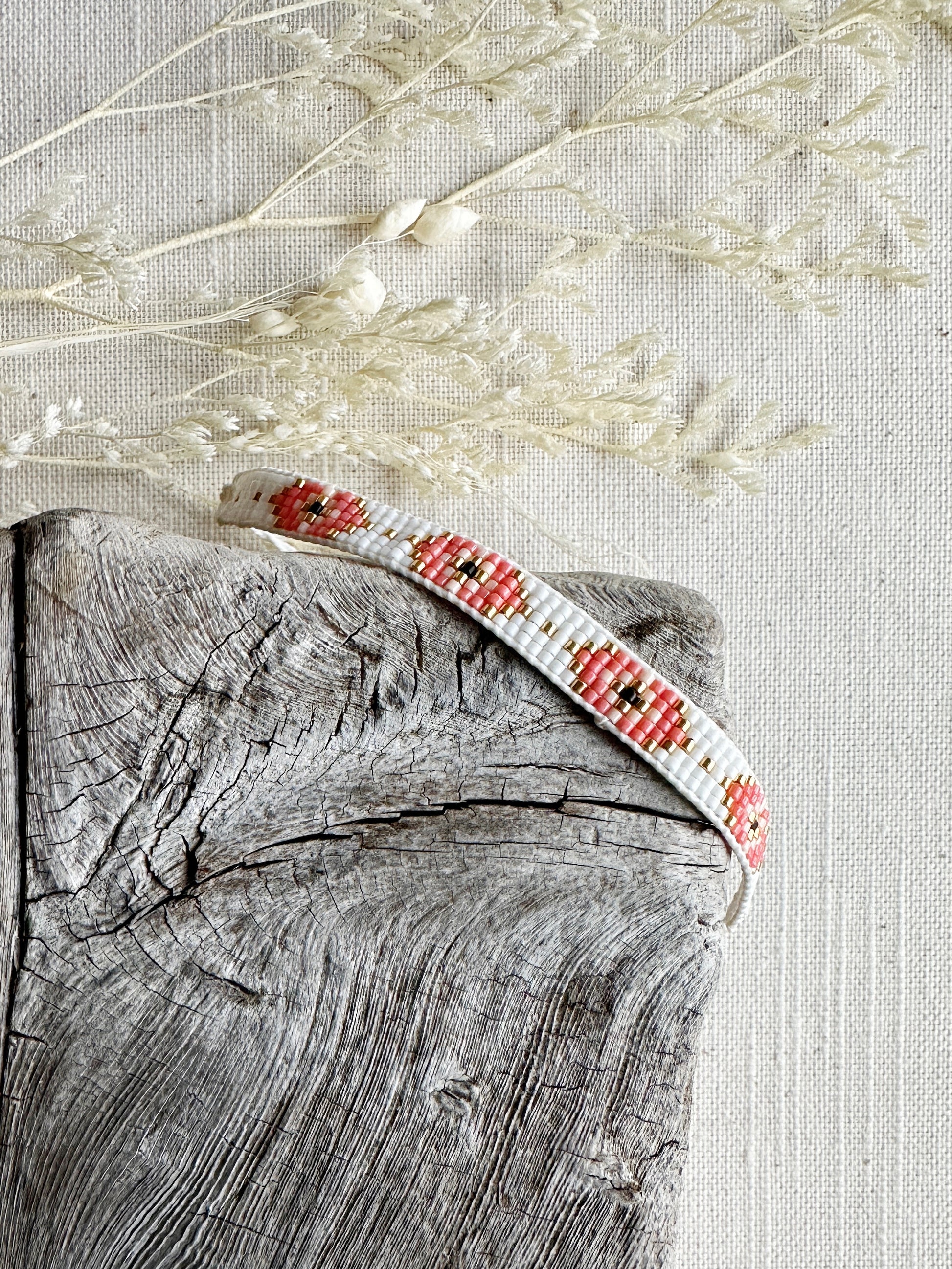 Loom woven bracelet with Delica beads and a waxed polyester cord.