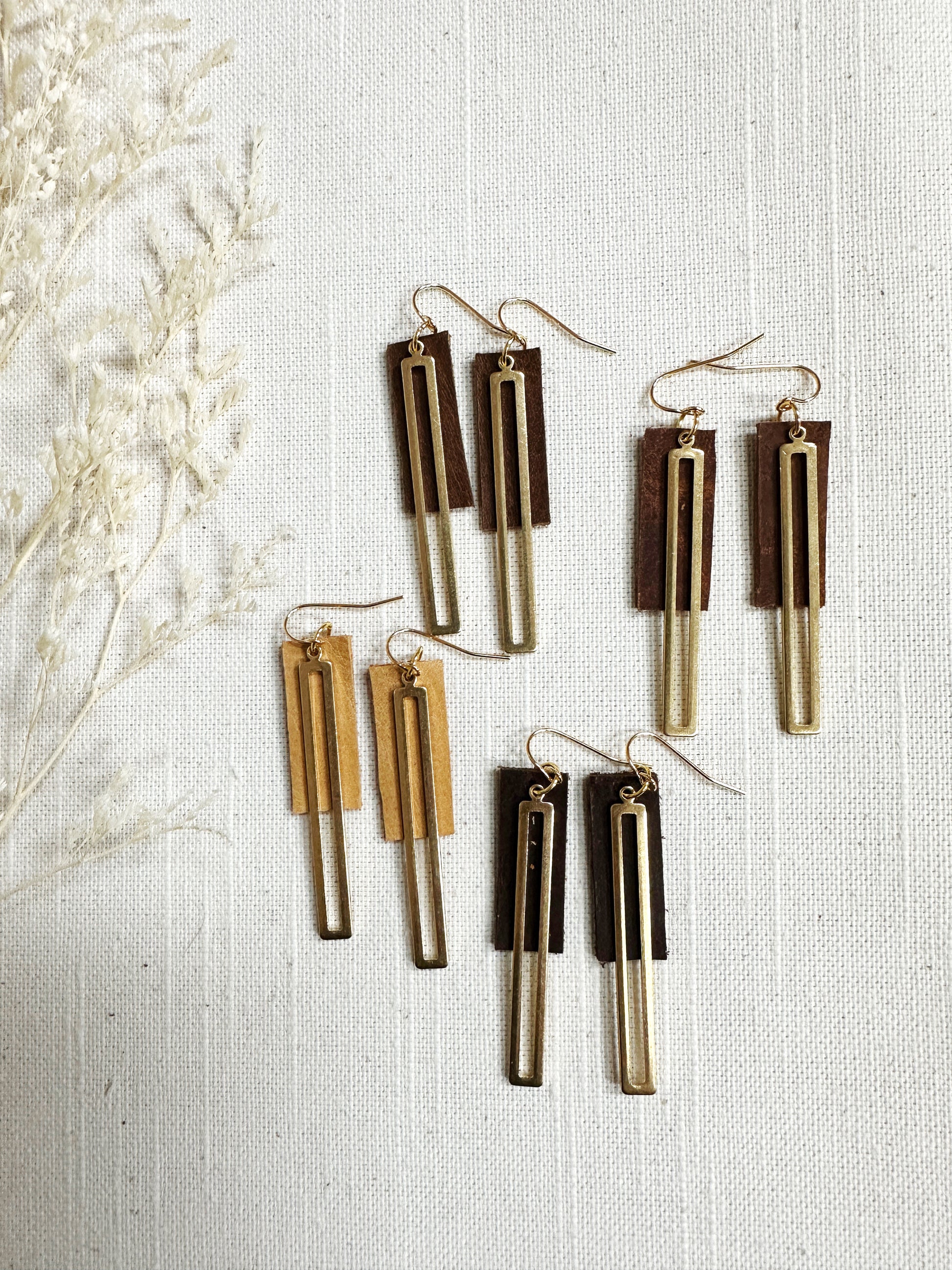 The same gorgeous leather used in my other styles is now available with these Hailey earrings! Made with smooth leather and brass components, these playful drop earrings add a touch of texture and style to any outfit.