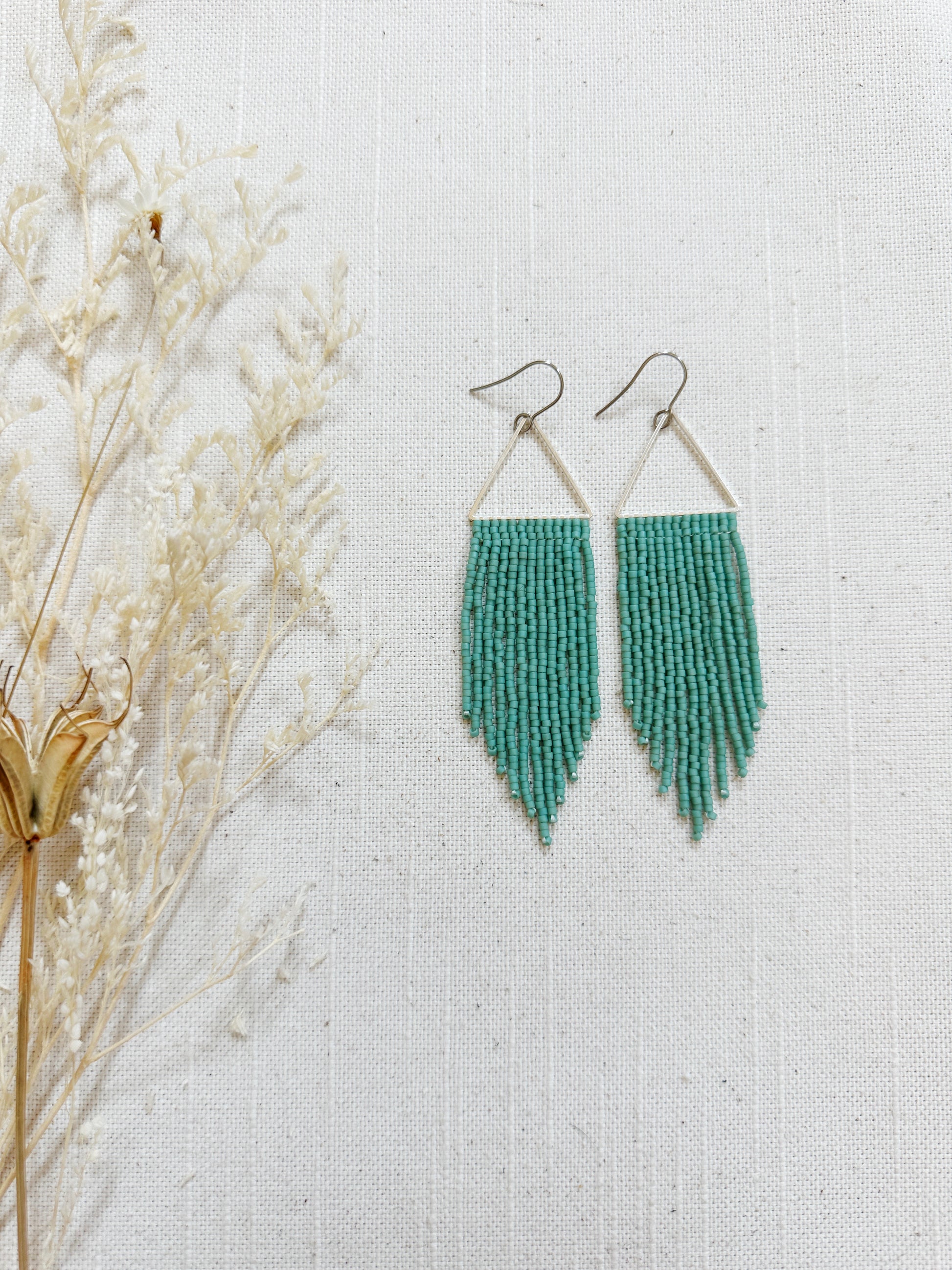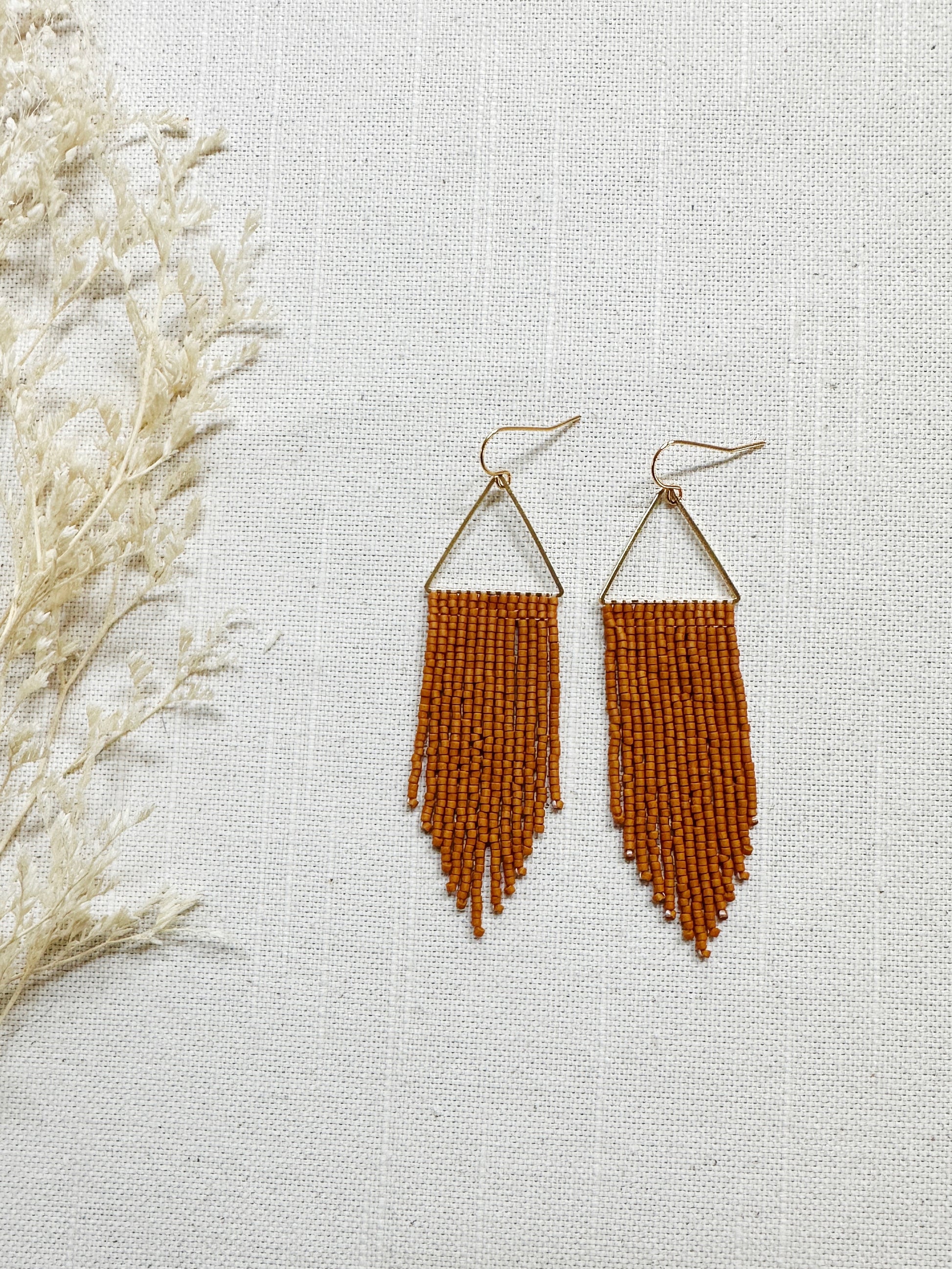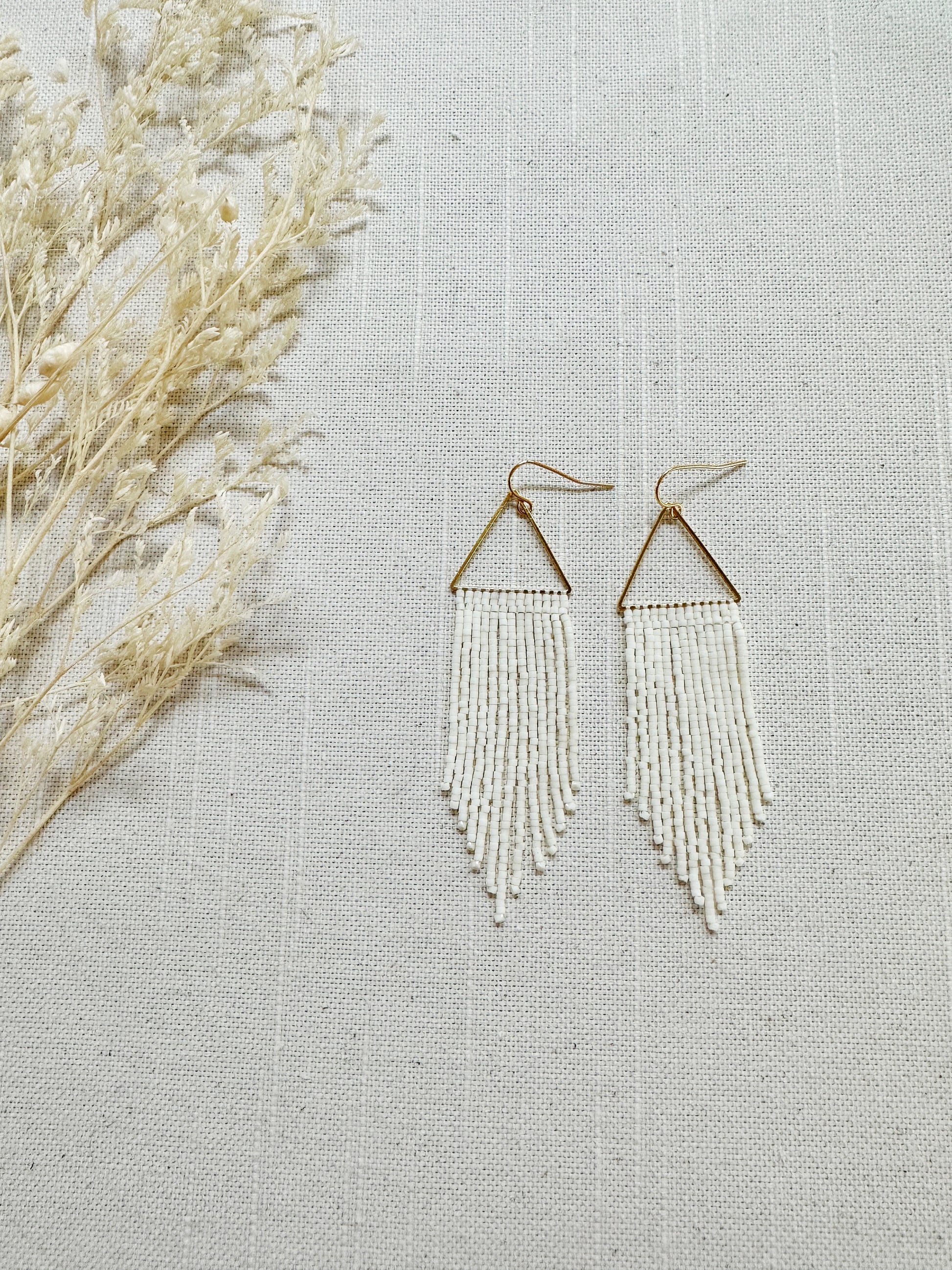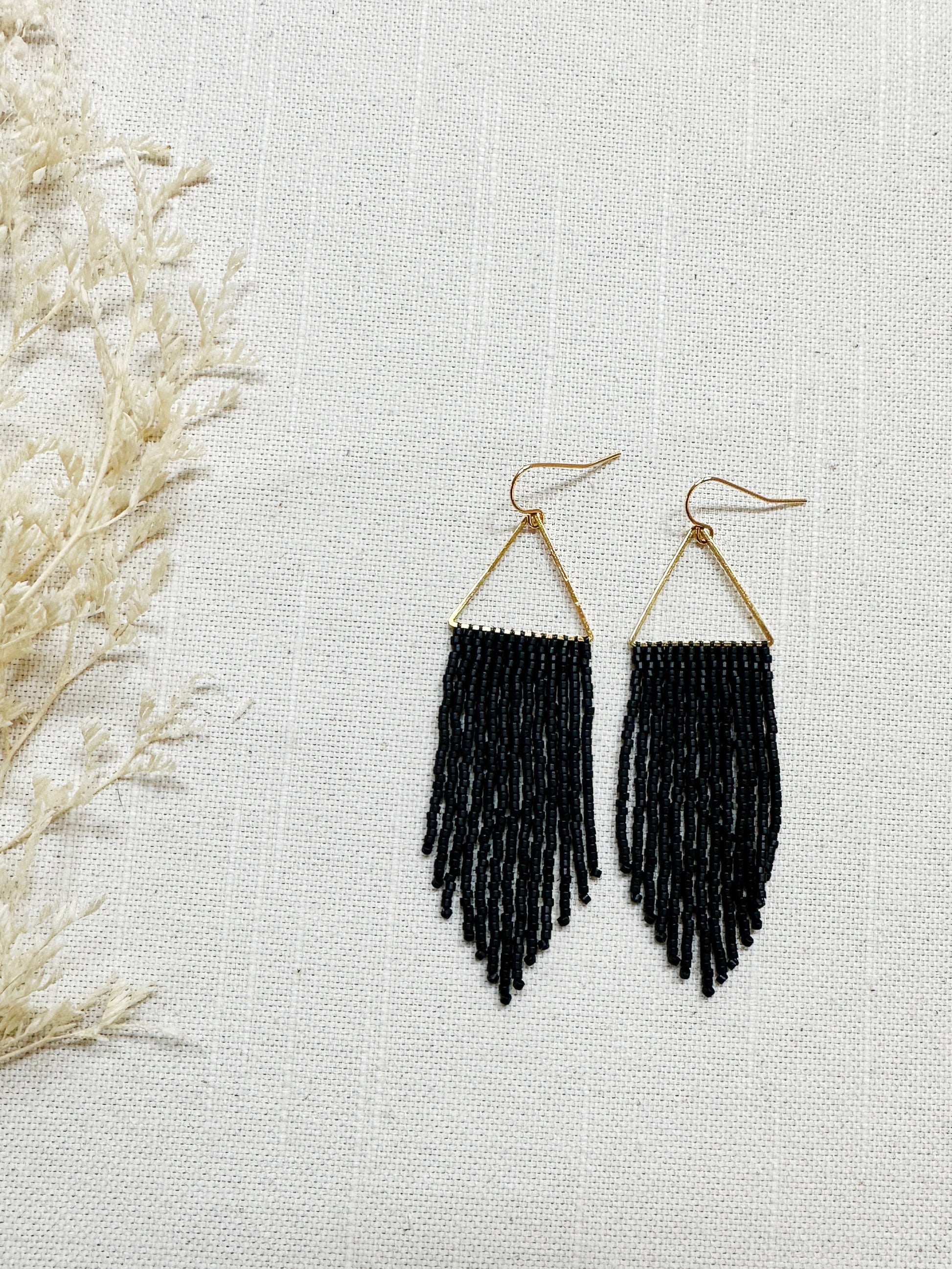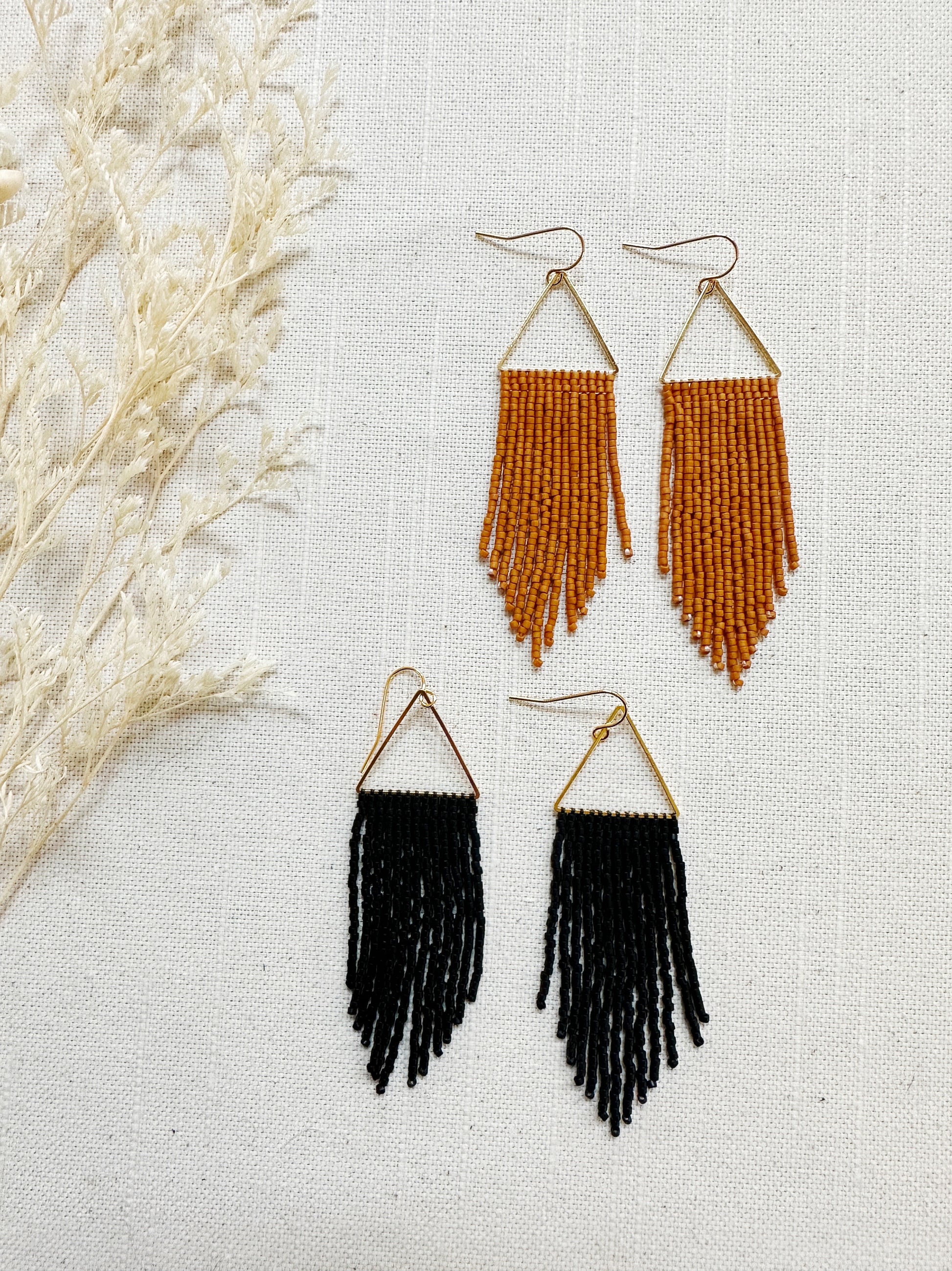 Solid color combos on the lighter side with gold plated triangle findings (or silver plated, see item name)