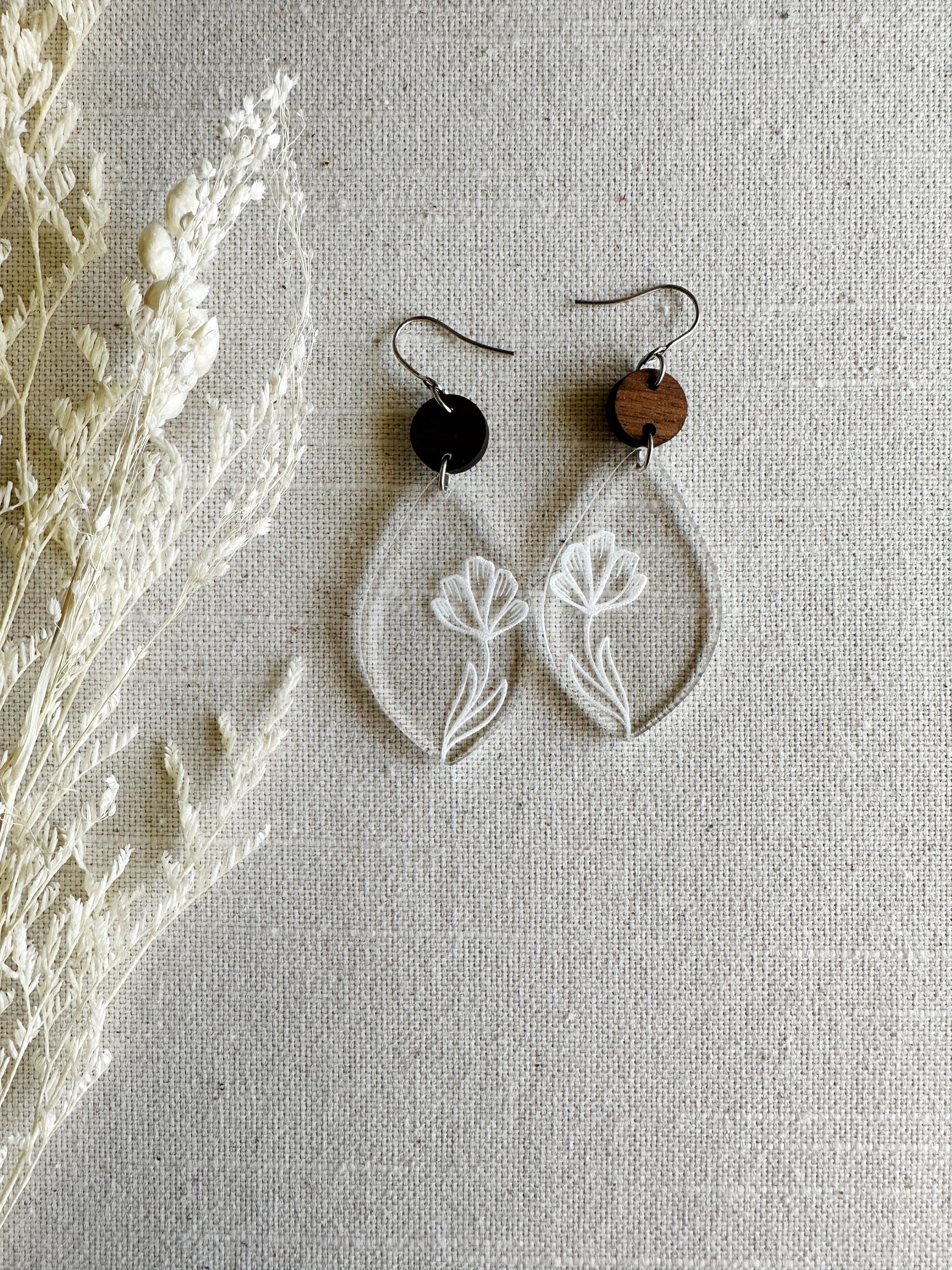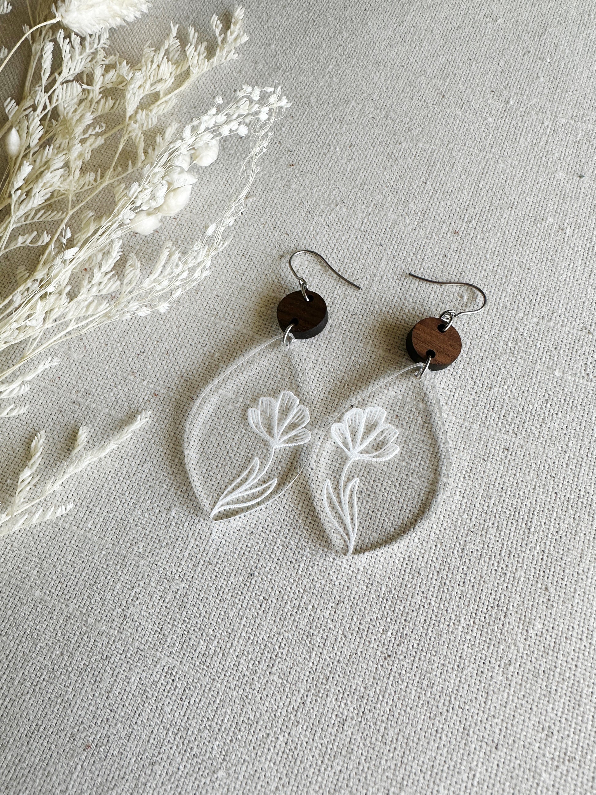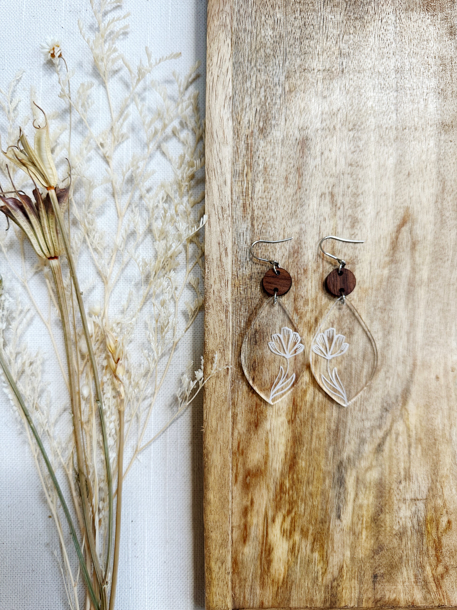 Laser cut walnut plywood and Acrylic with a single flower pattern