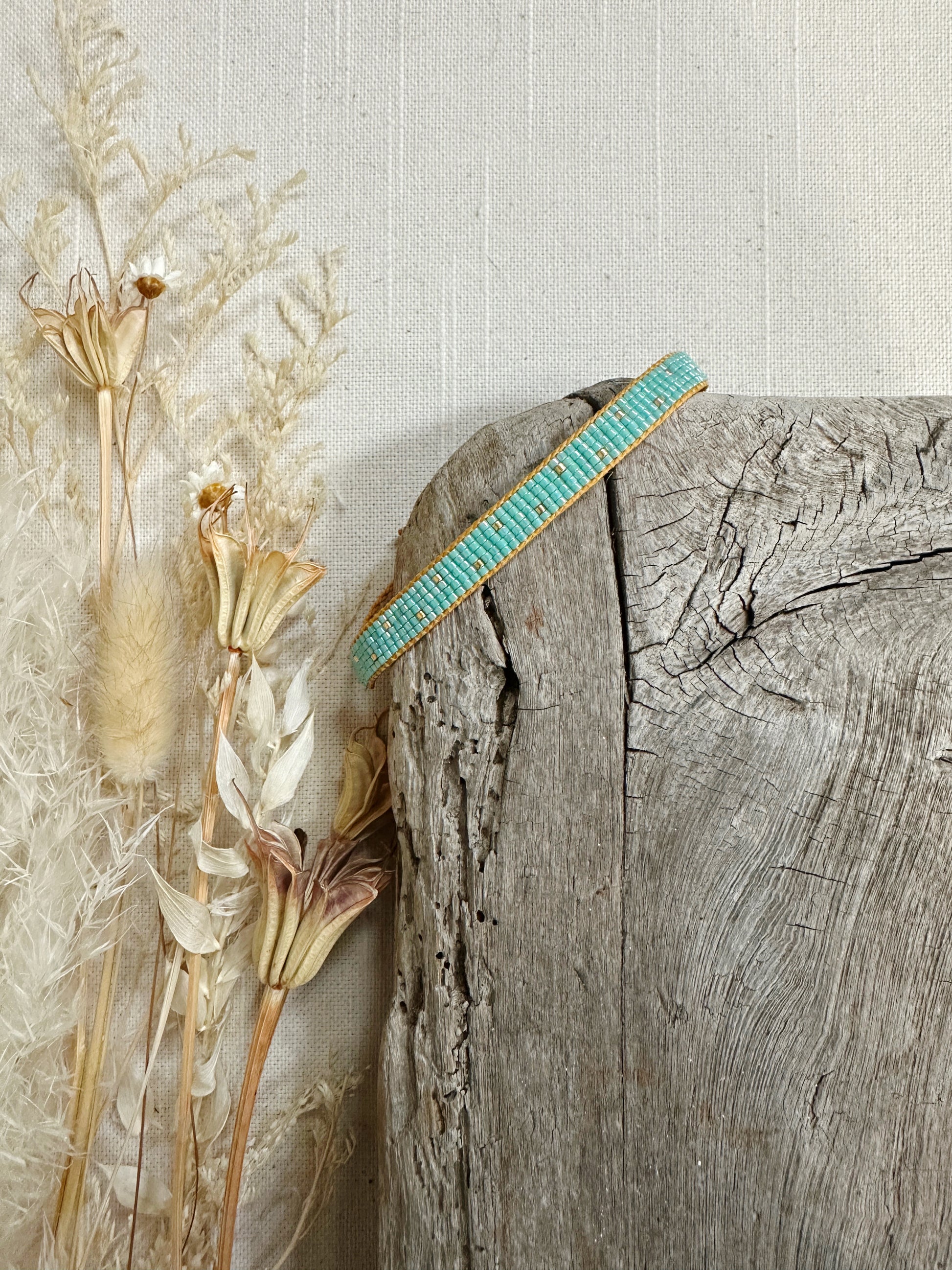 Loom woven bracelet sets with Delica beads and a waxed polyester cord.