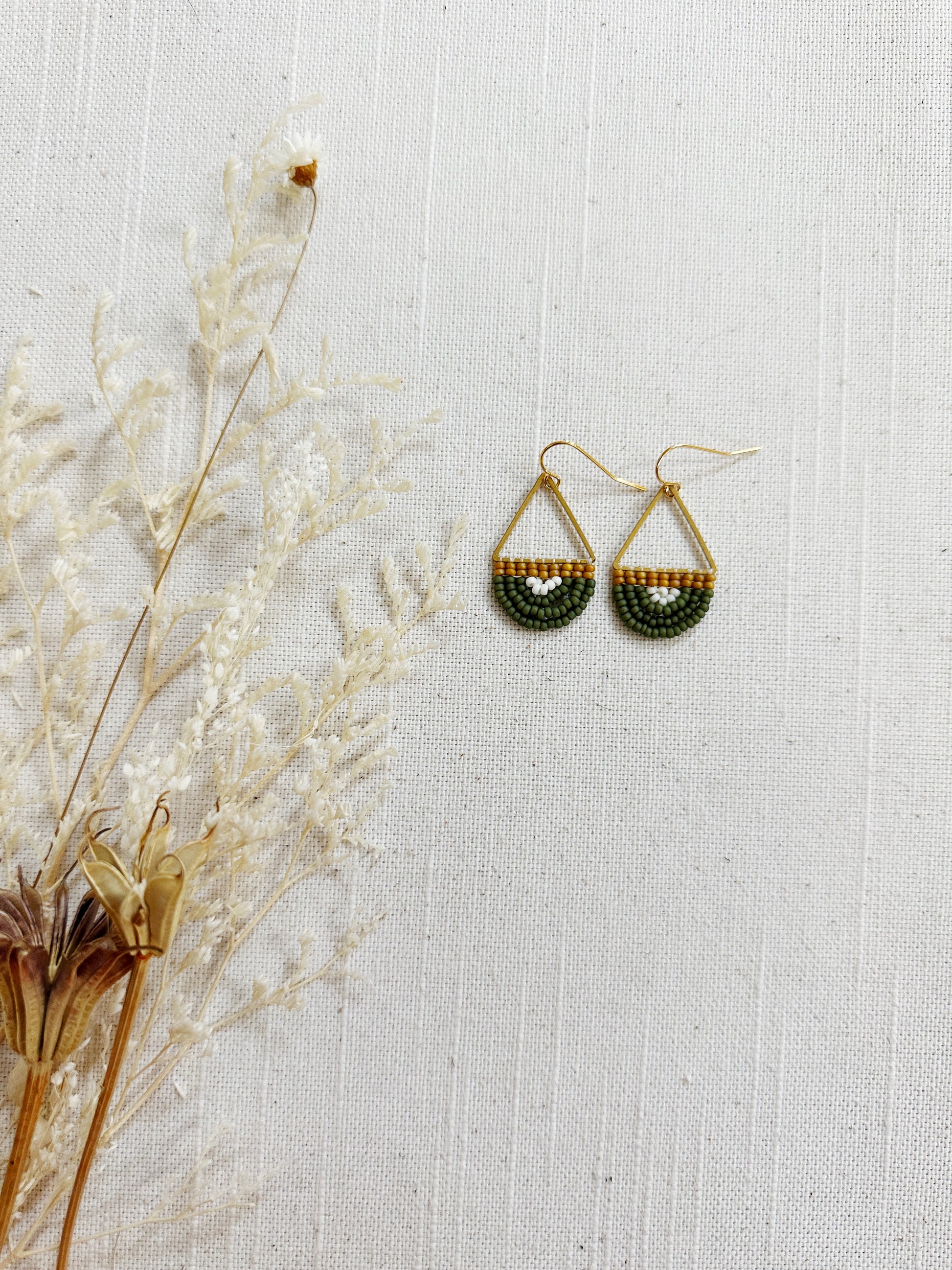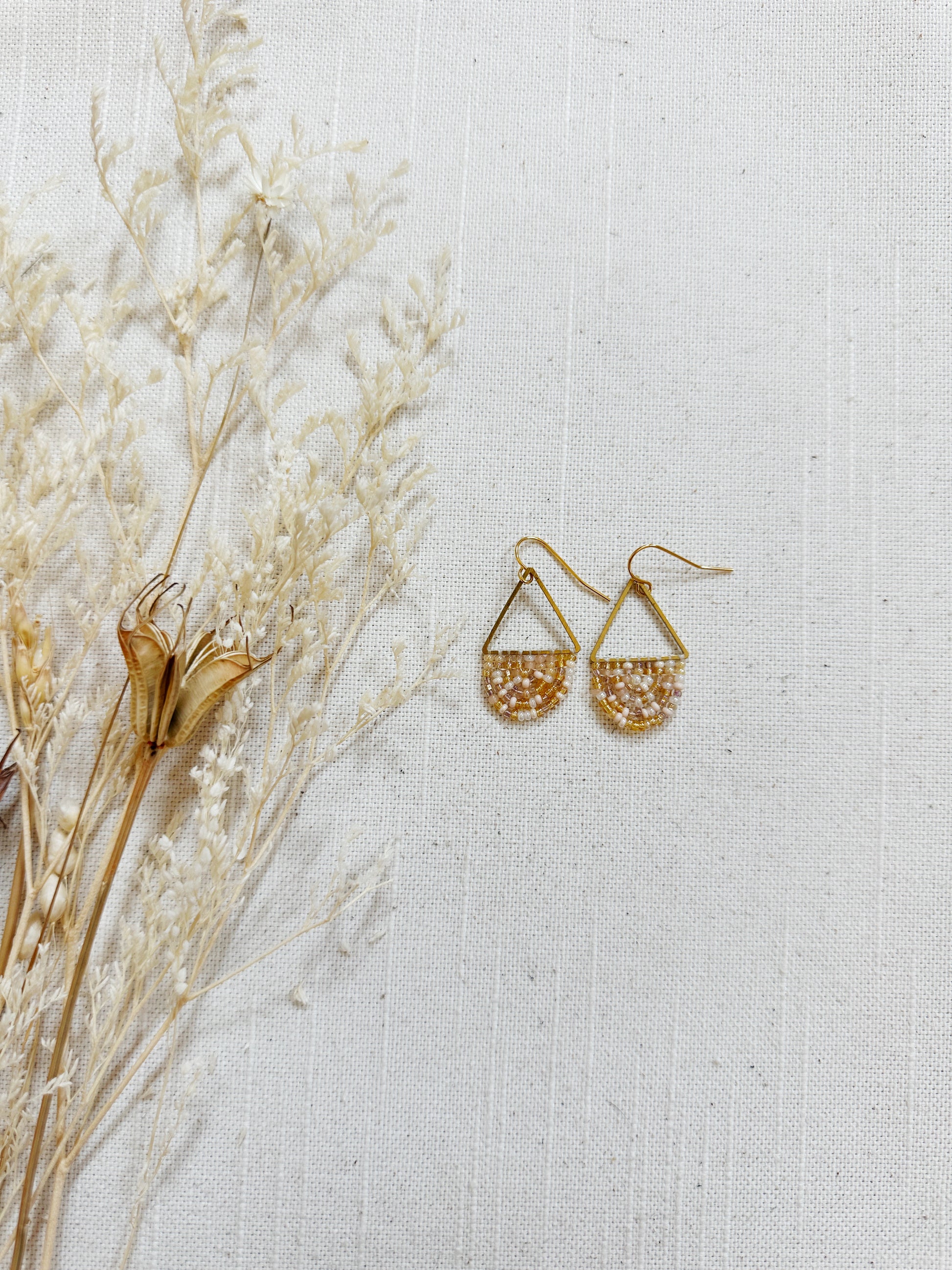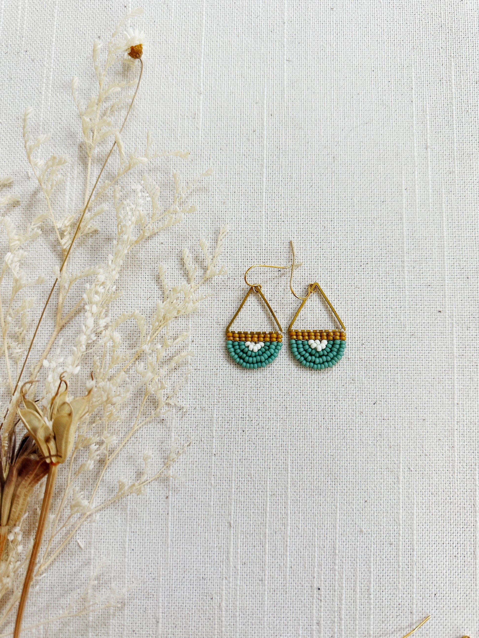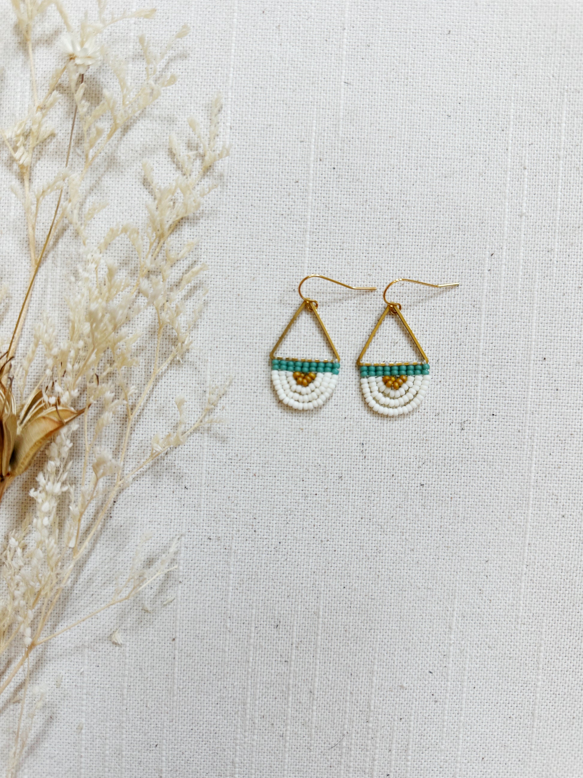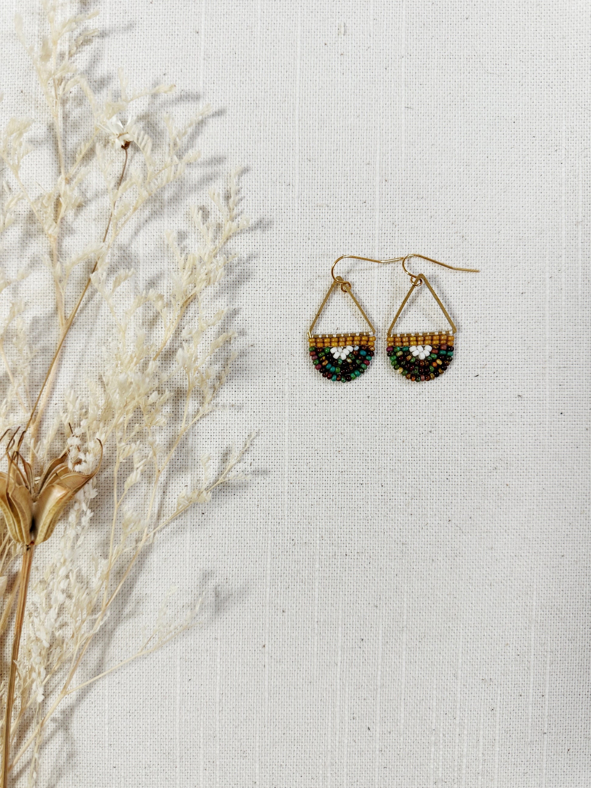 The mixed beads earring (Golds & Creams, Reds, Browns & Turquoise, Pinks, Browns, Greens & Turquoise) these are not identical earring sets and not two pairs will ever be the same. What you see in the photo is an example of what the style looks like but the beads will not be in the same order. It’s a collection of colors mixed together.