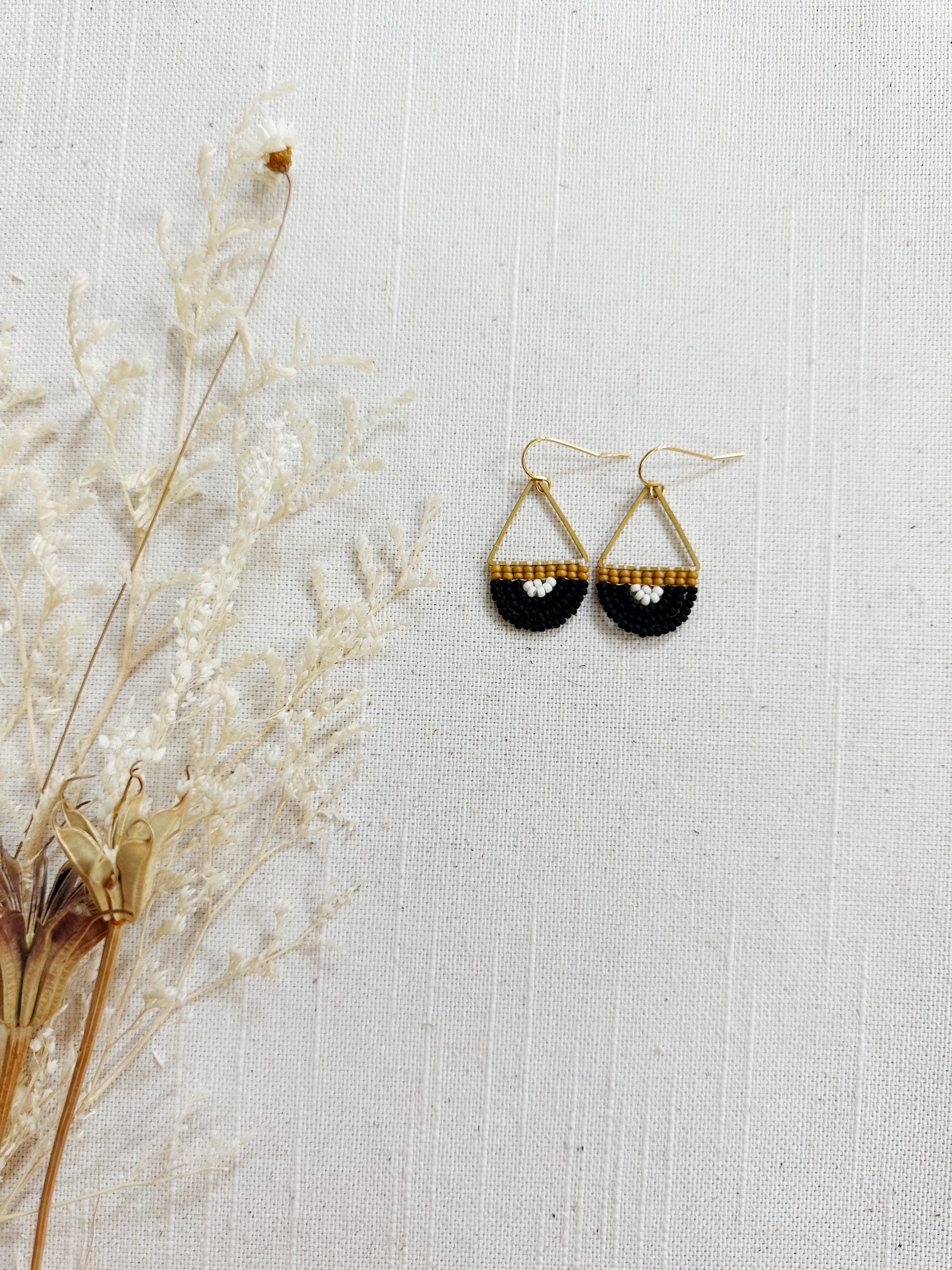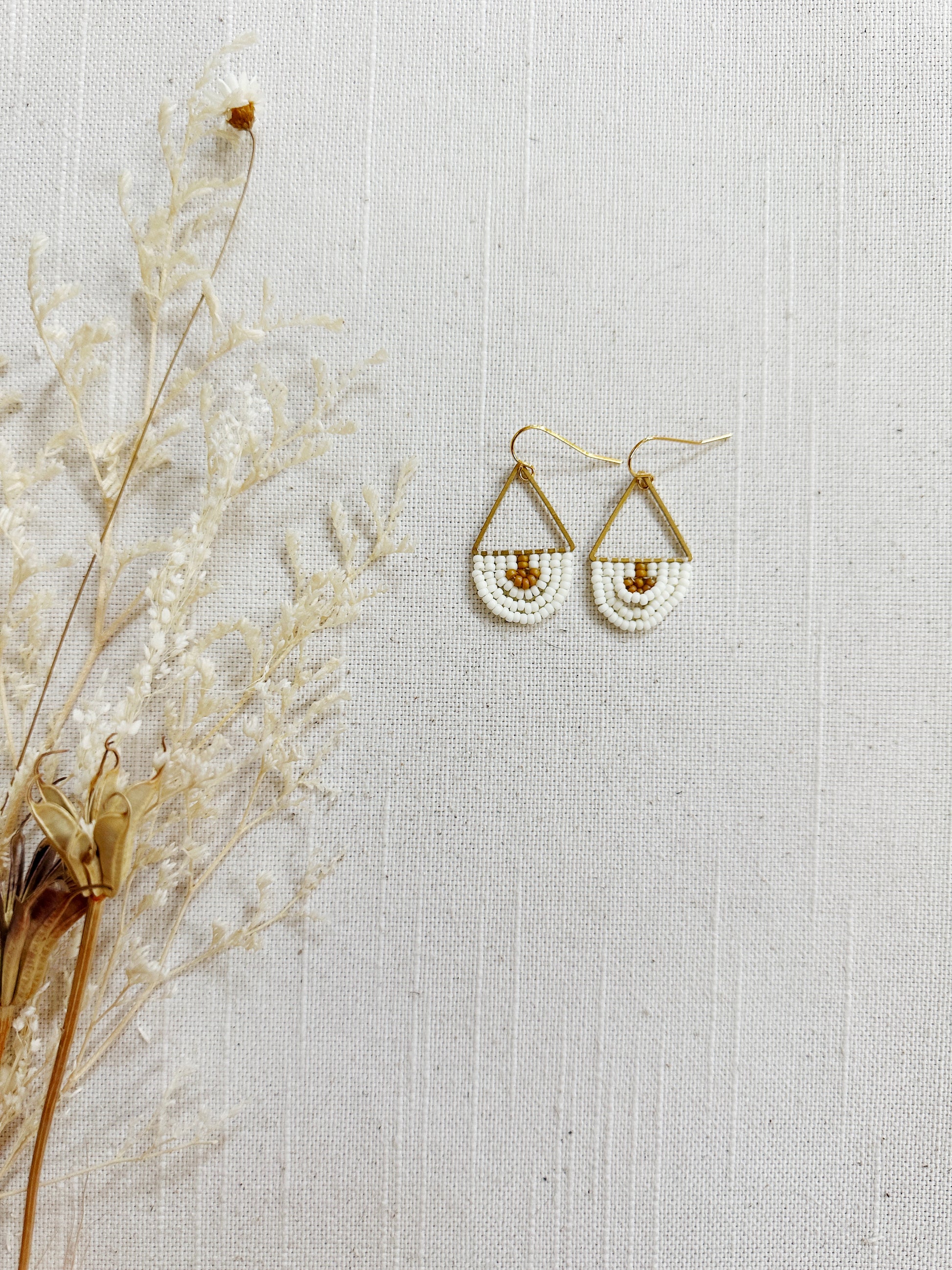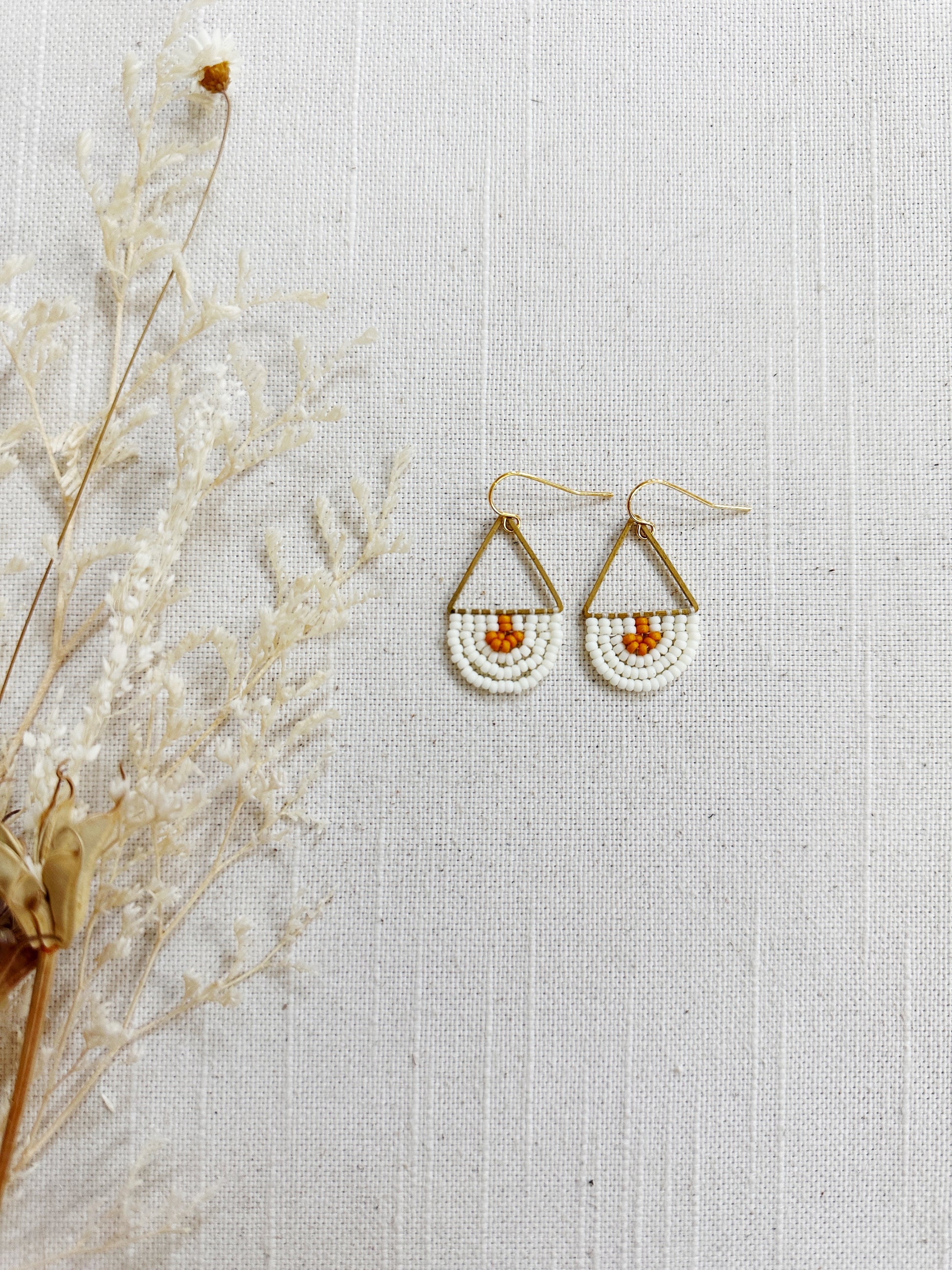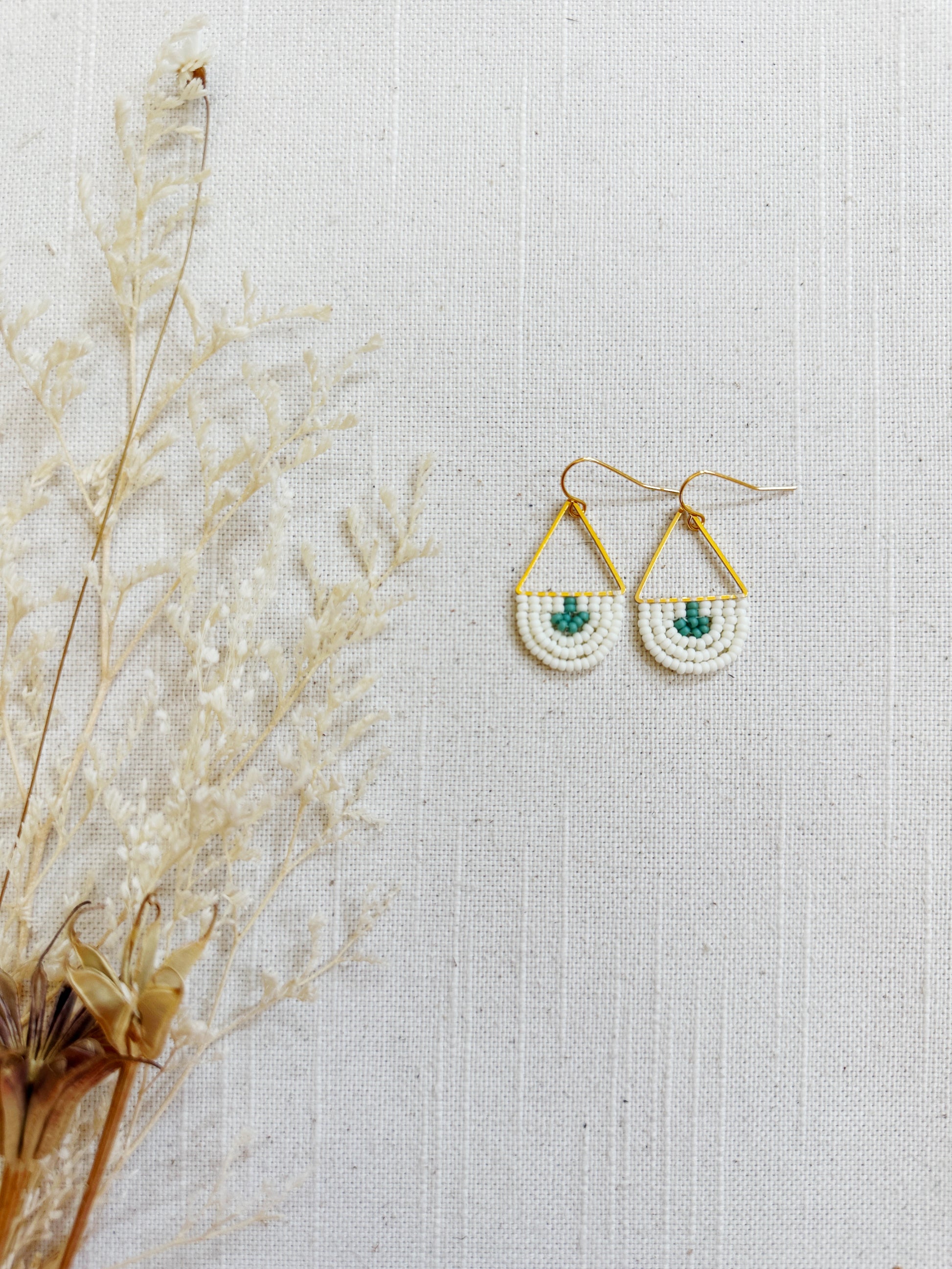 The mixed beads earring (Golds & Creams, Reds, Browns & Turquoise, Pinks, Browns, Greens & Turquoise) these are not identical earring sets and not two pairs will ever be the same. What you see in the photo is an example of what the style looks like but the beads will not be in the same order. It’s a collection of colors mixed together.