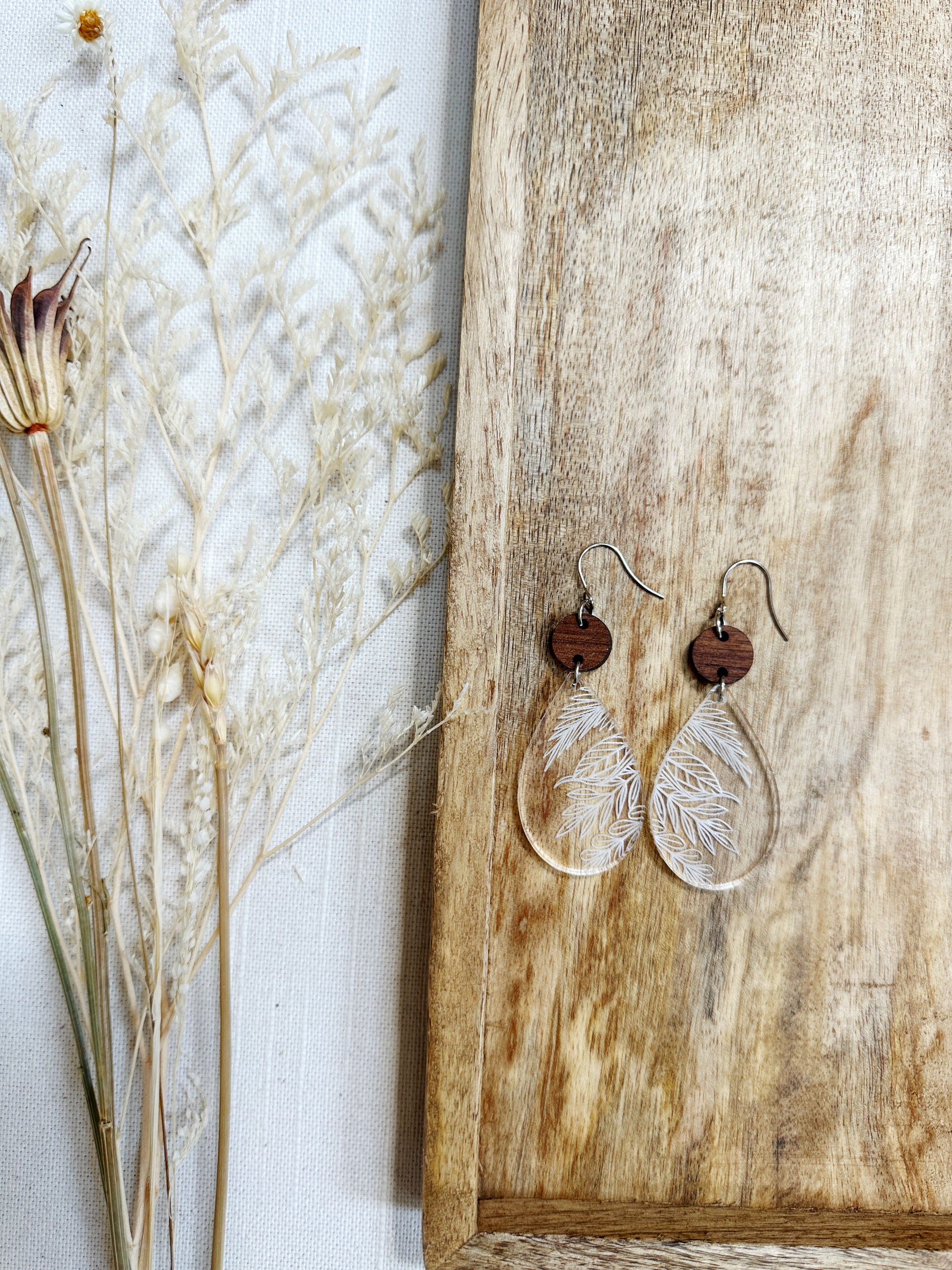 Keep dry and hang or lay flat when not wearing. Spot clean any wood and acrylic items.