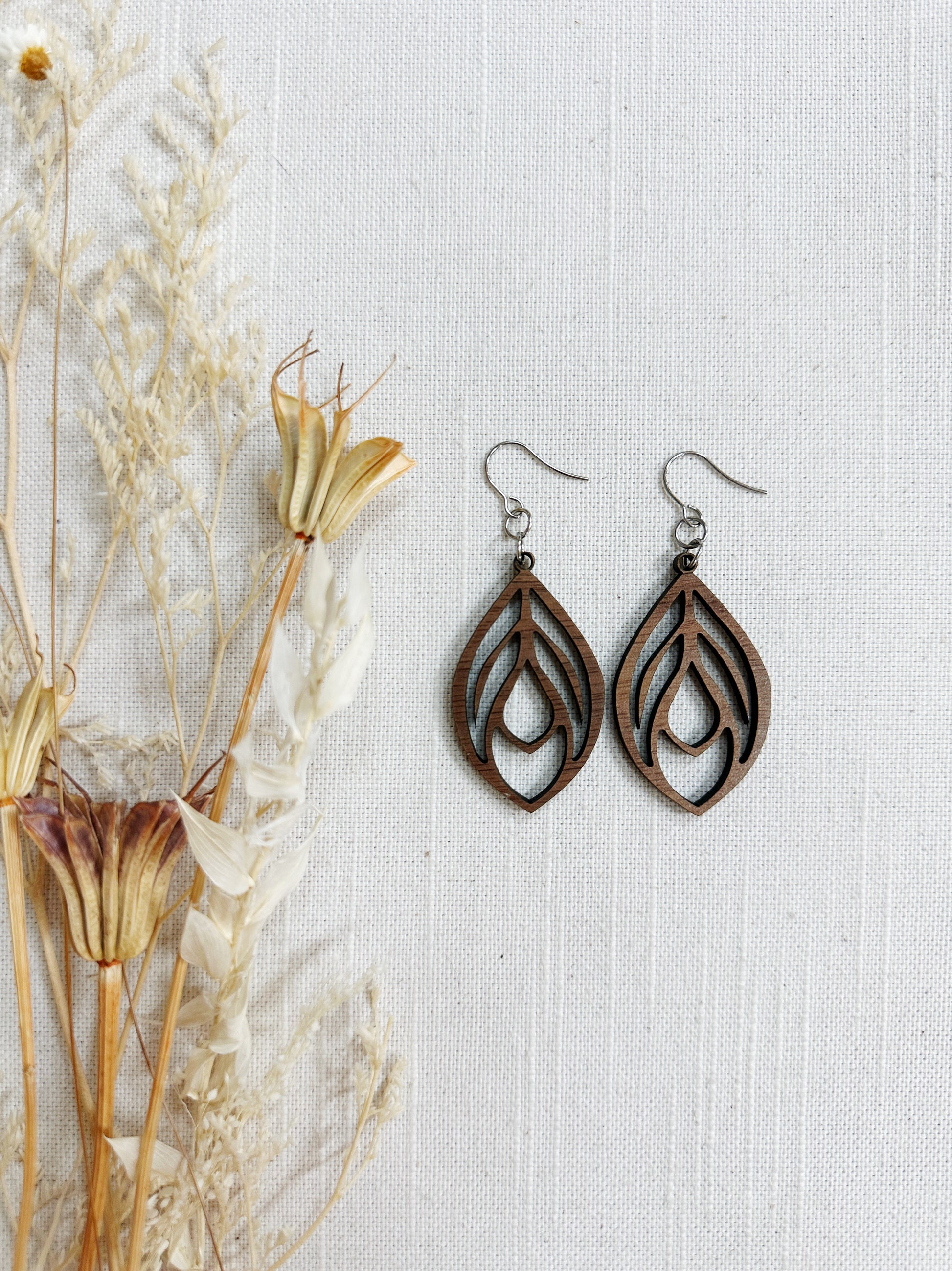 Small and lightweight these walnut wood earrings are perfect for everyday wear.