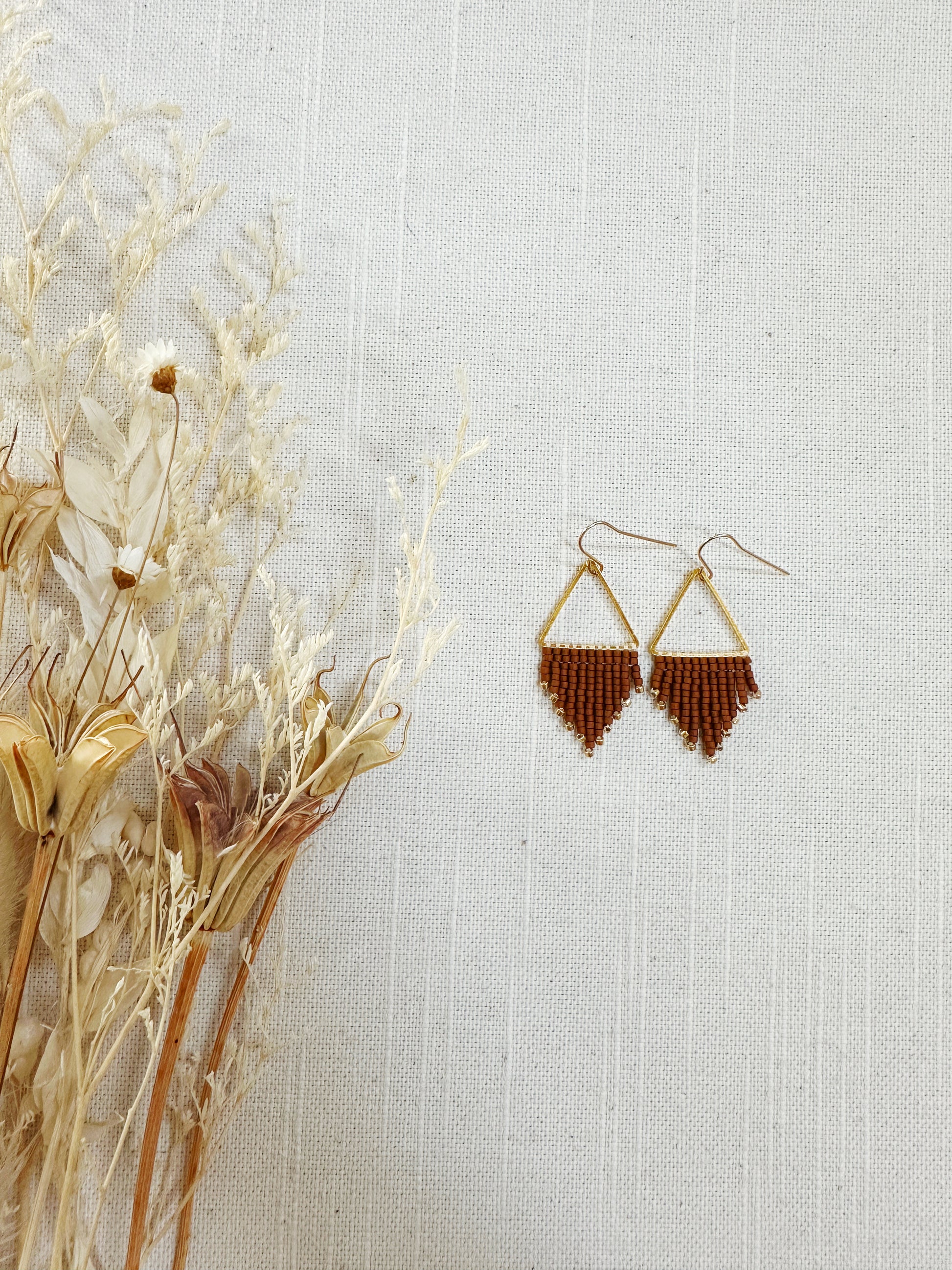 Fringe but make it petite! These adorable tiny fringe earrings are perfect for every day wear. Gold or silver plated triangles with tiny fringe.
