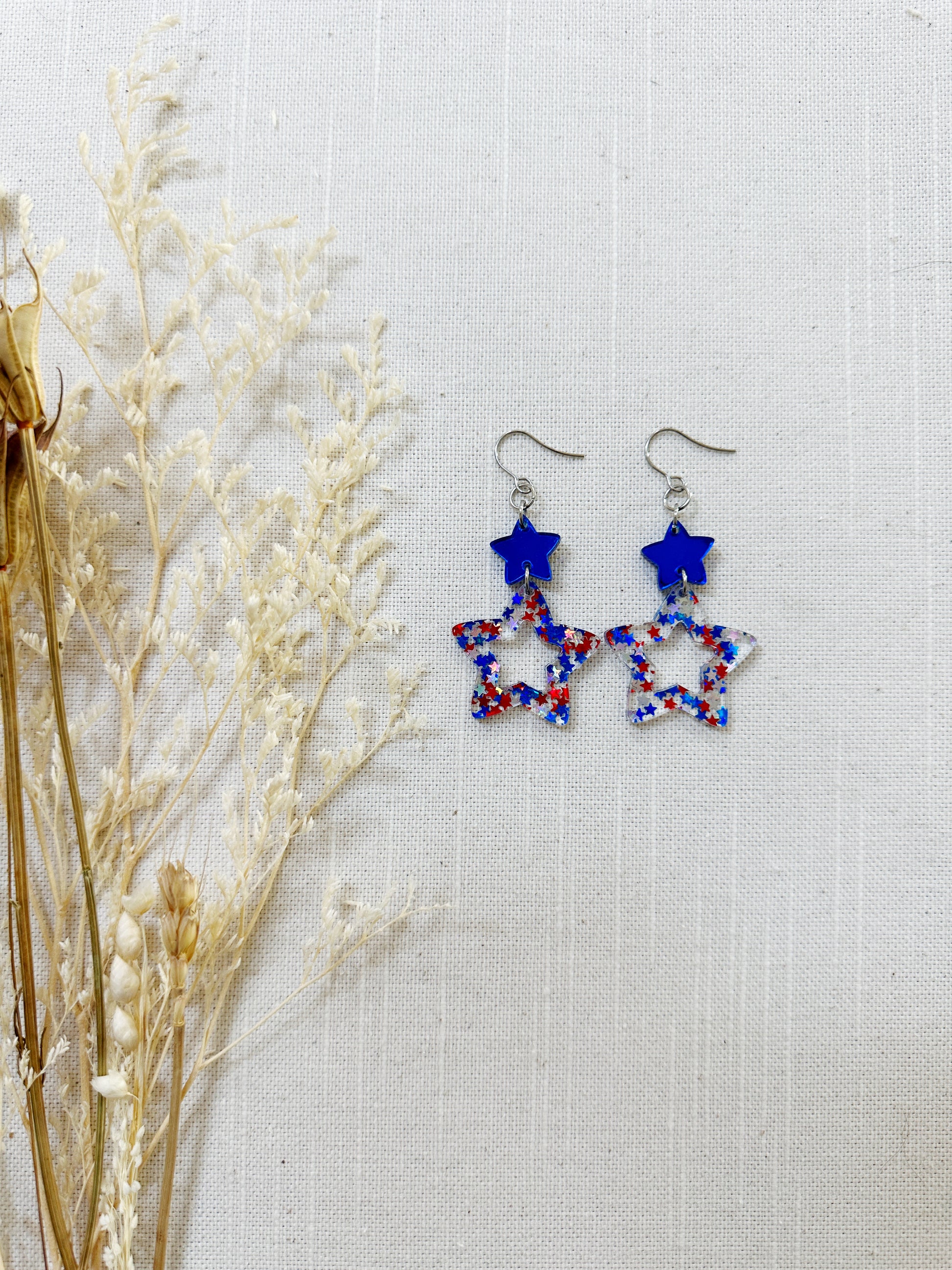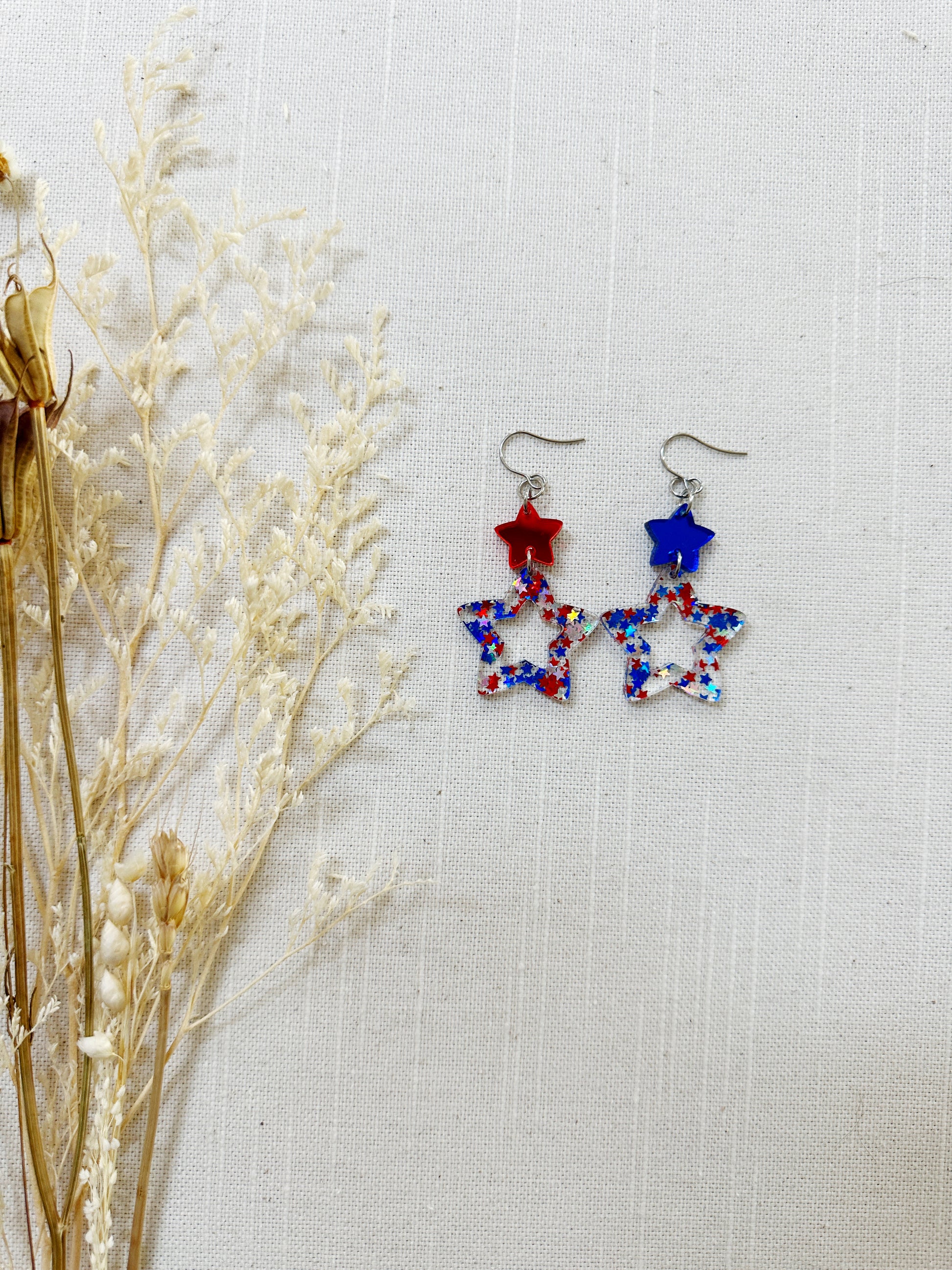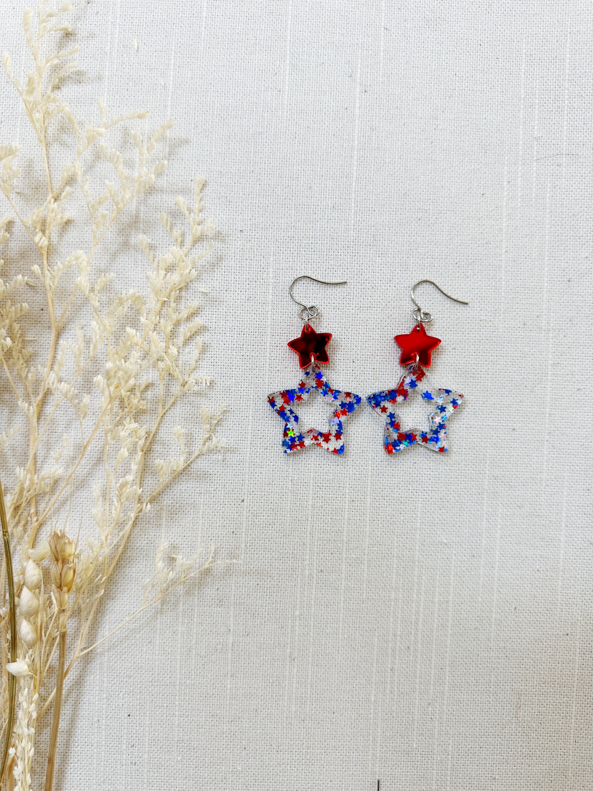 Red & Blue Mirror Acrylic stars with Clear acrylic with 3 colors of stars in multiple design options.