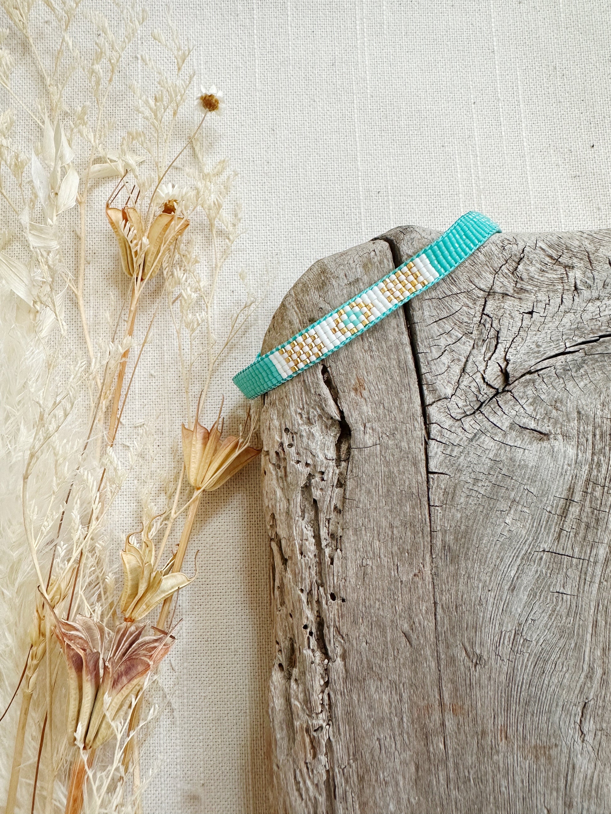 Loom woven bracelet sets with Delica beads and a waxed polyester cord.