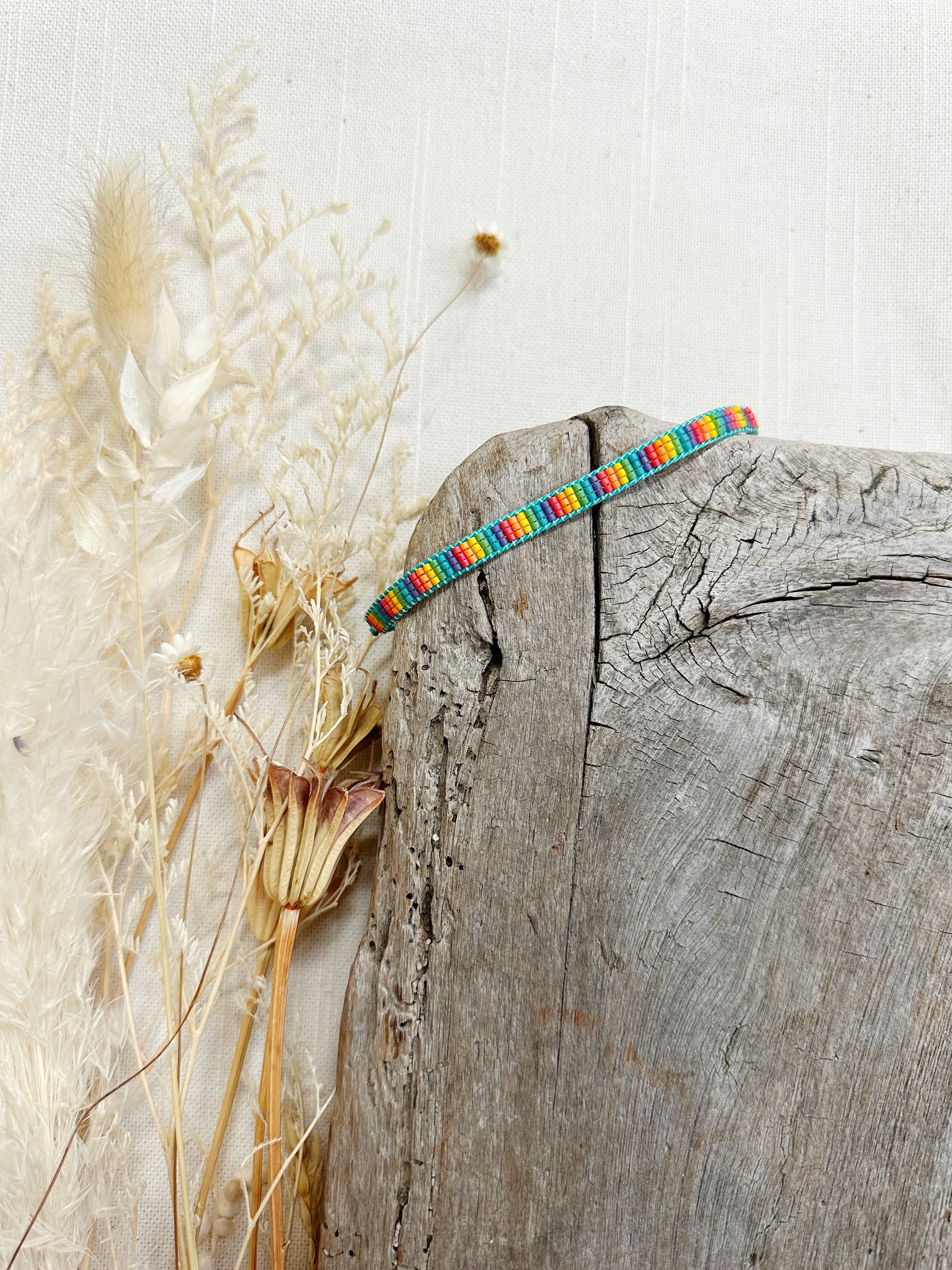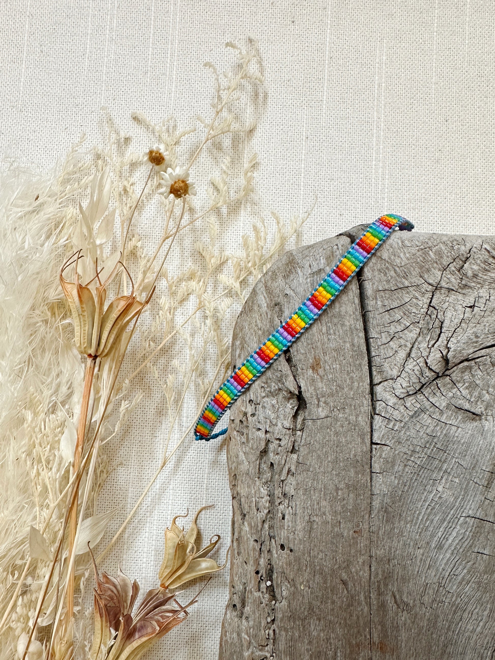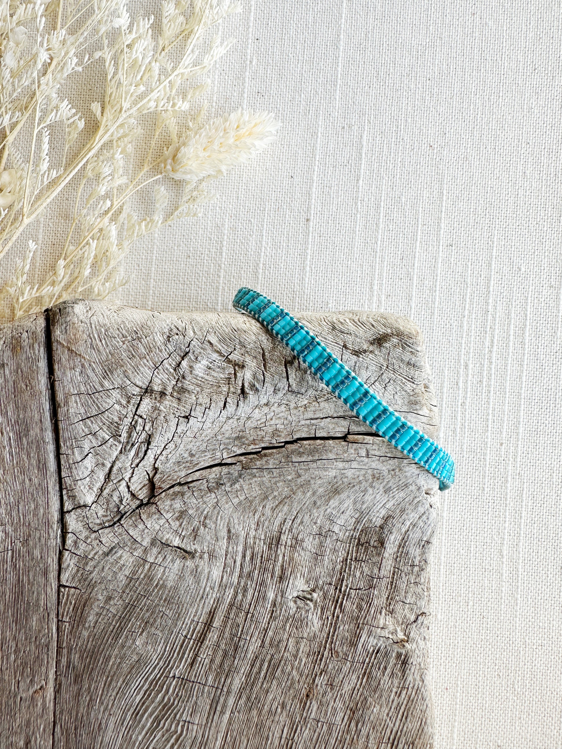 Loom woven bracelet with Delica beads and a waxed polyester cord.