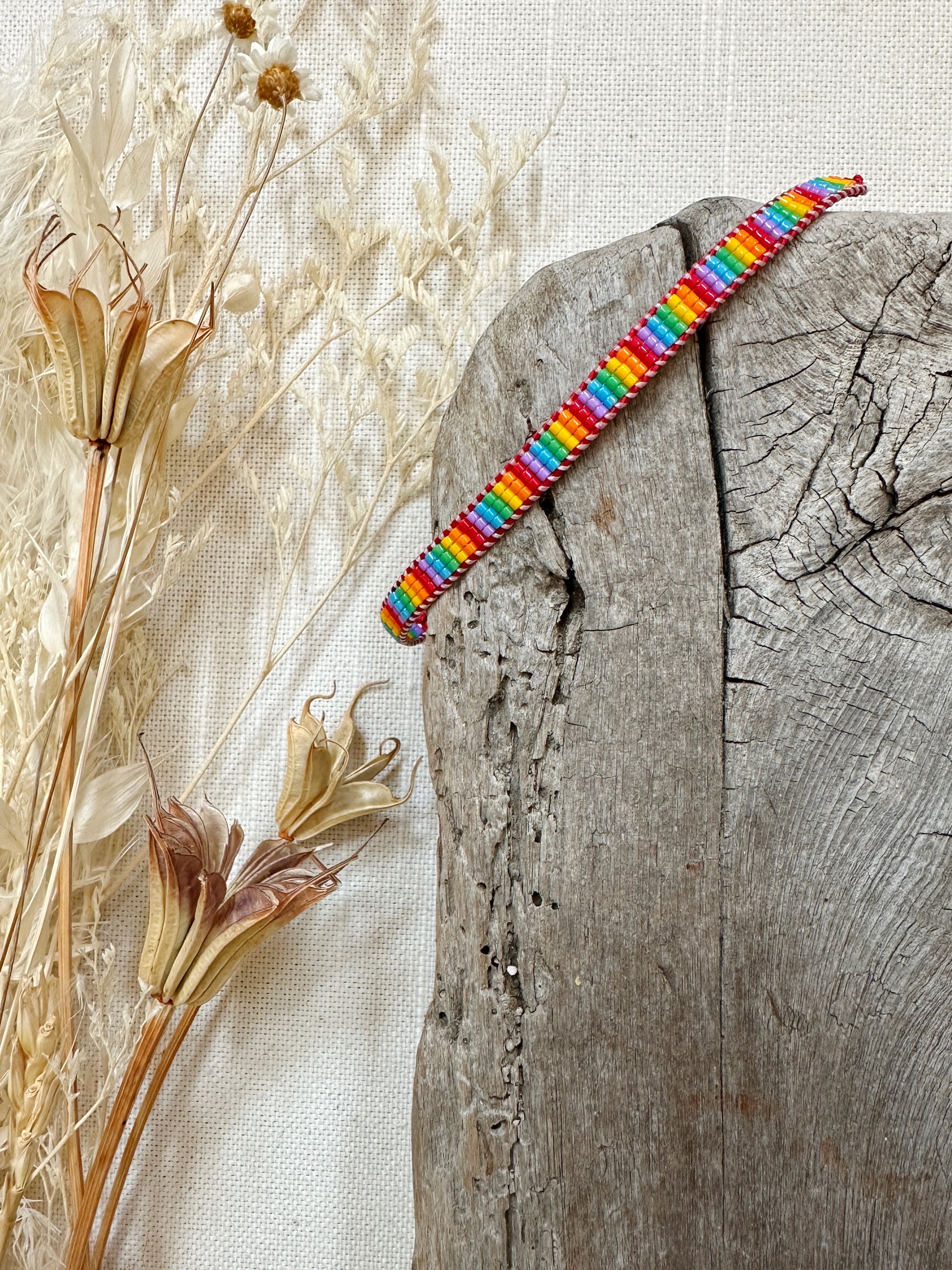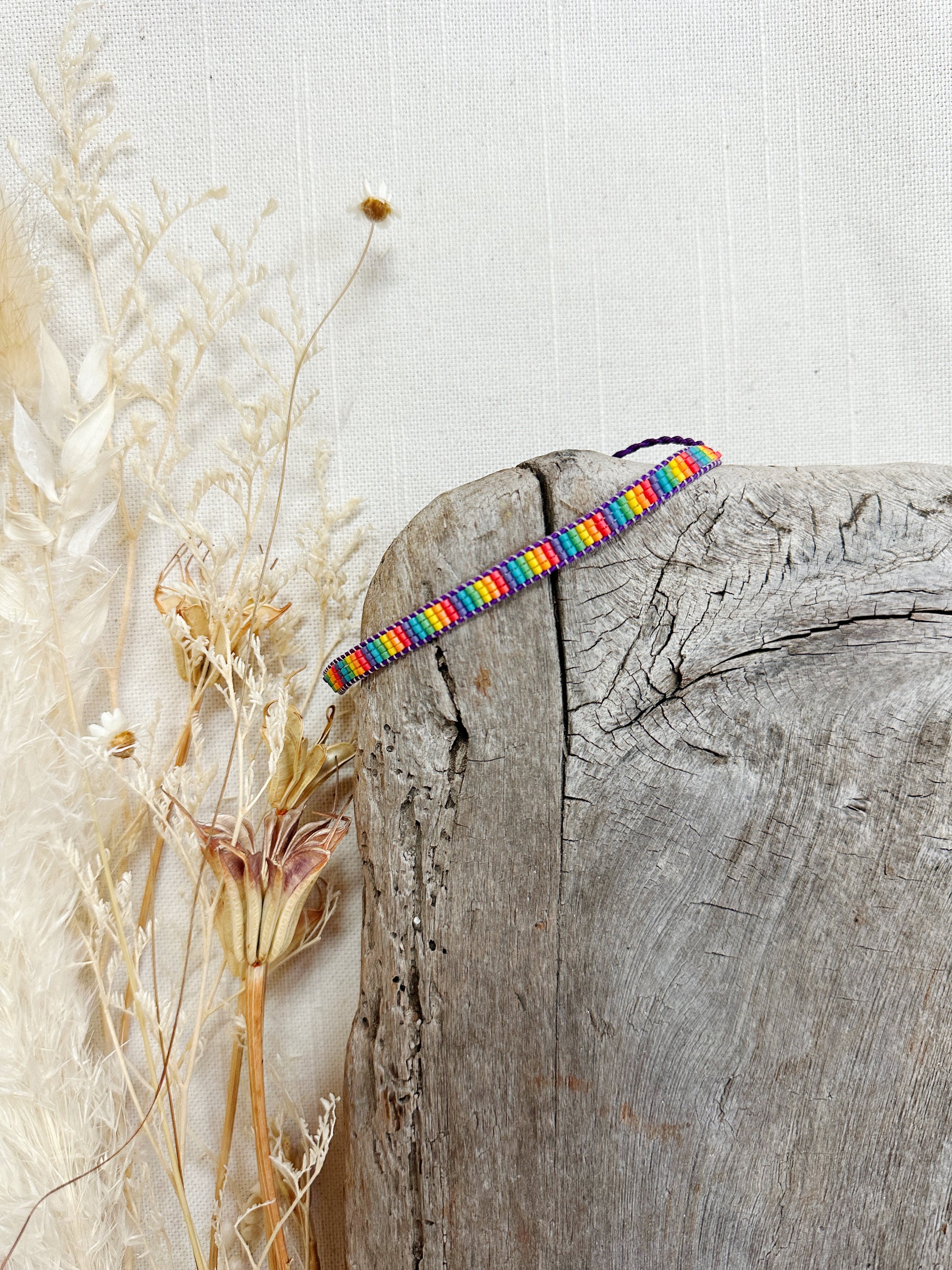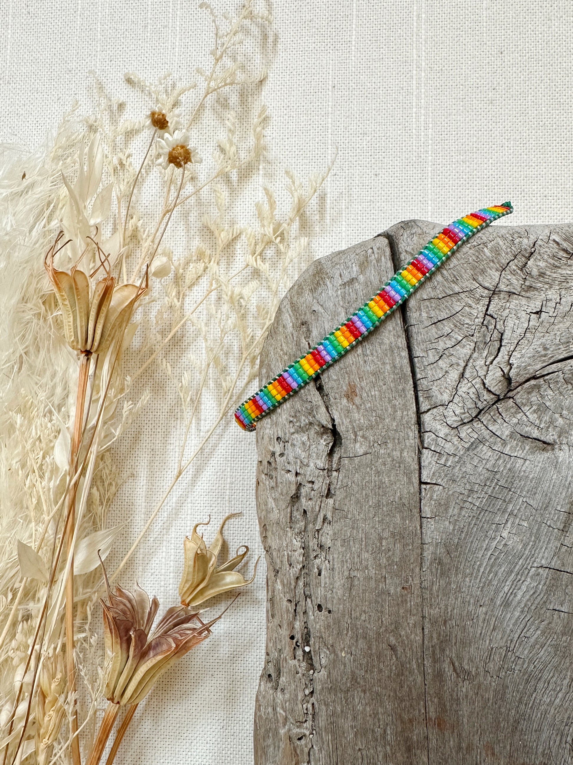 Loom woven bracelet with Delica beads and a waxed polyester cord.