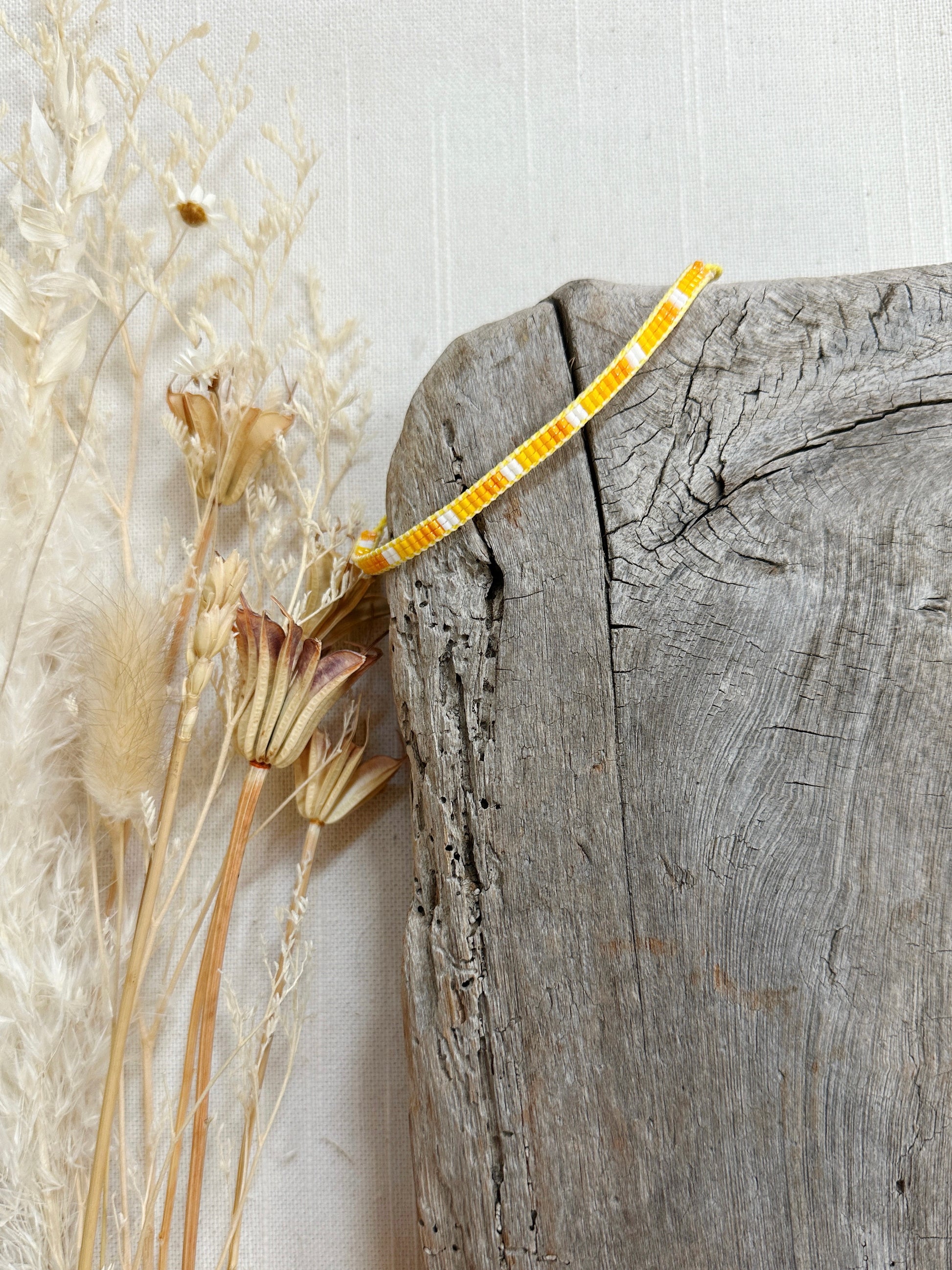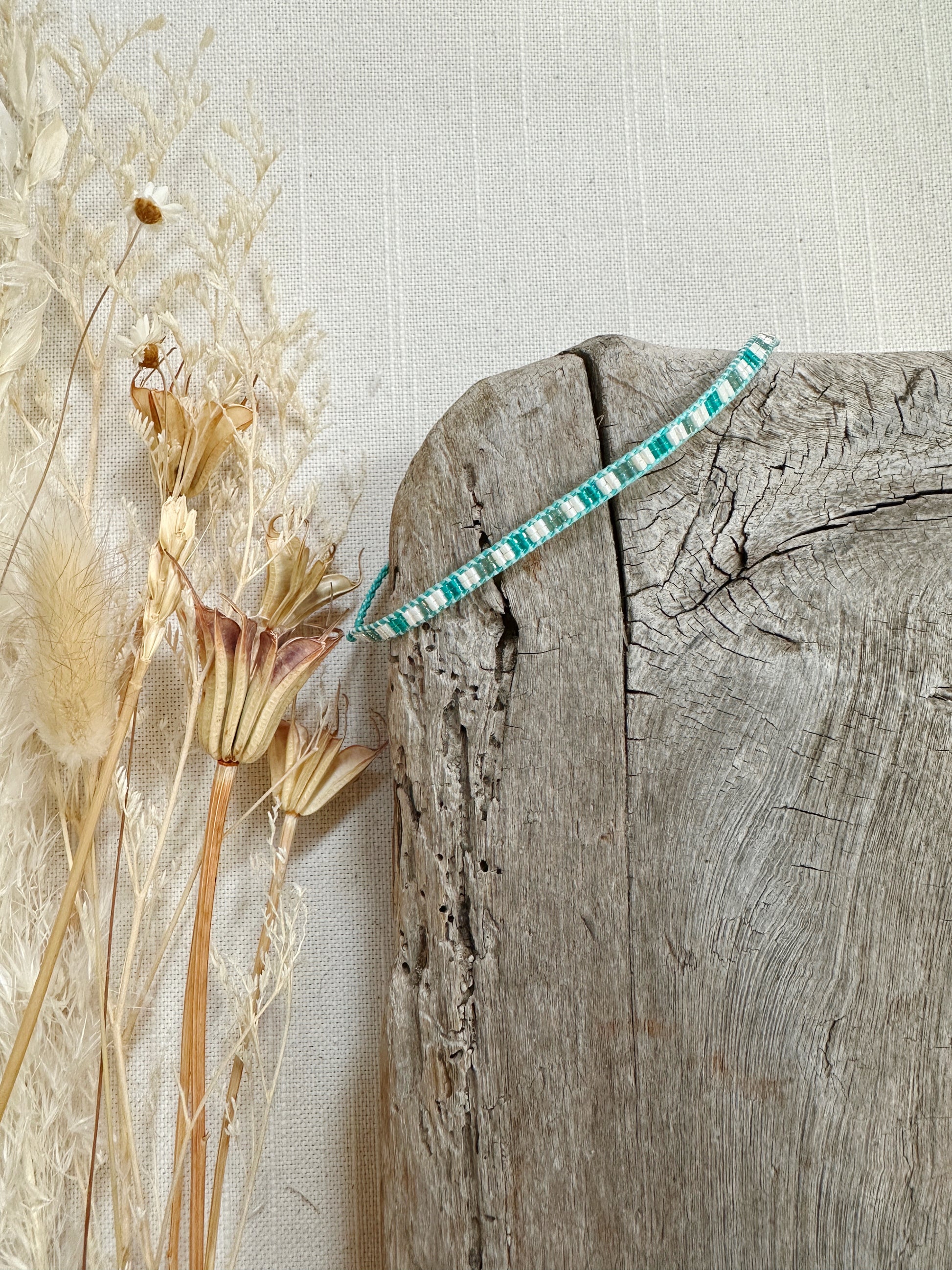 Loom woven bracelet with Delica beads and a waxed polyester cord.