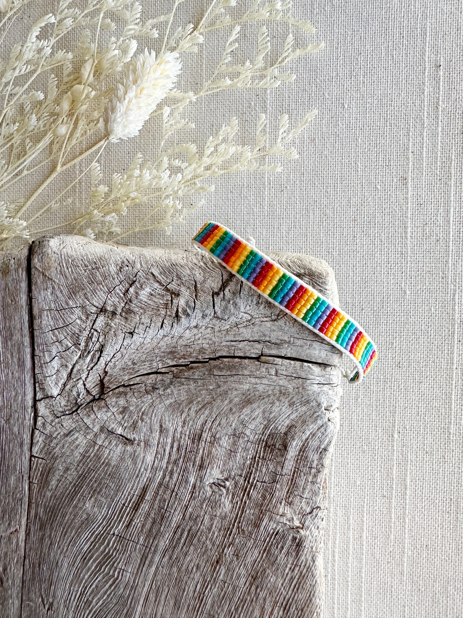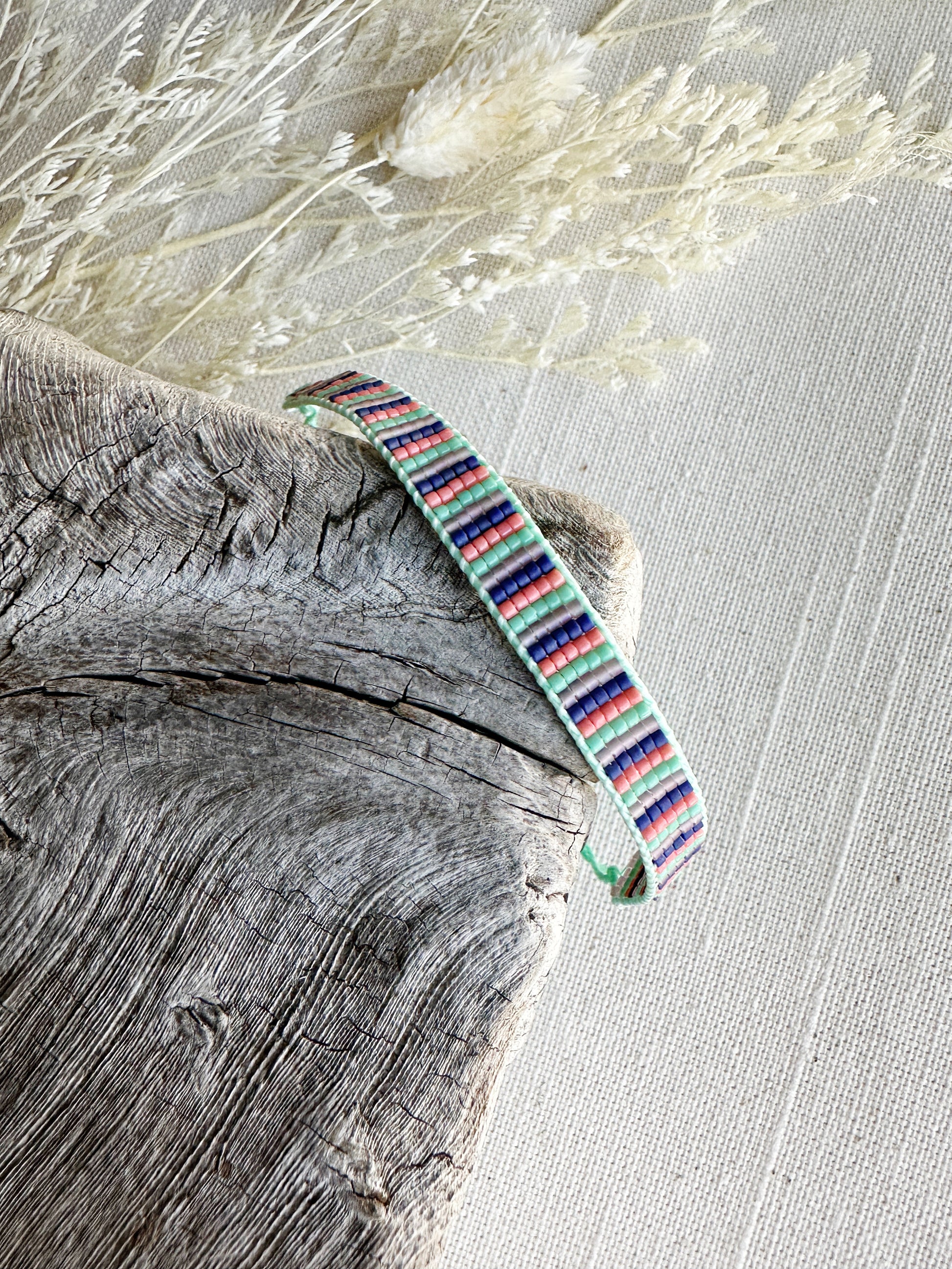 Loom woven bracelet with Delica beads and a waxed polyester cord.