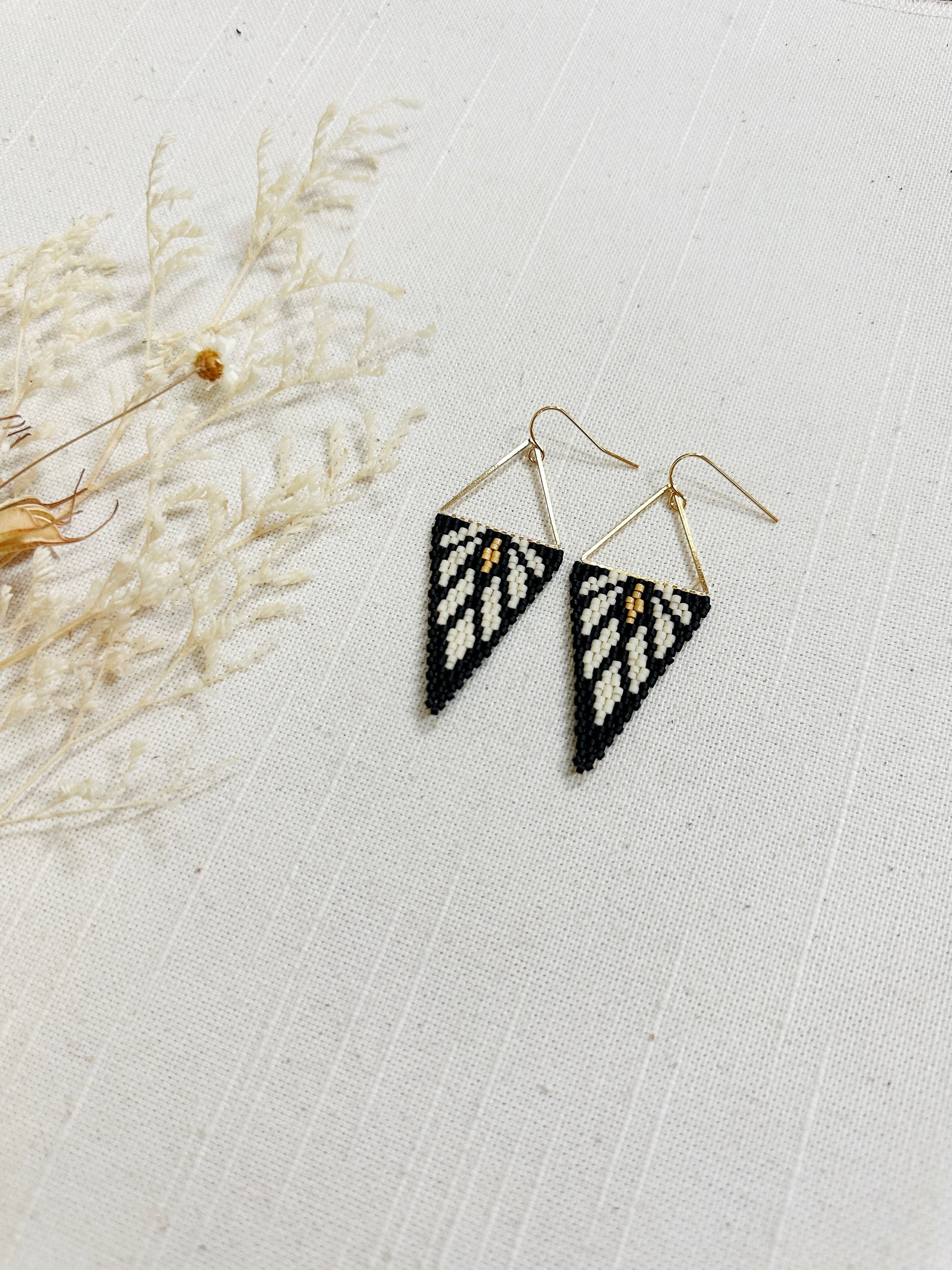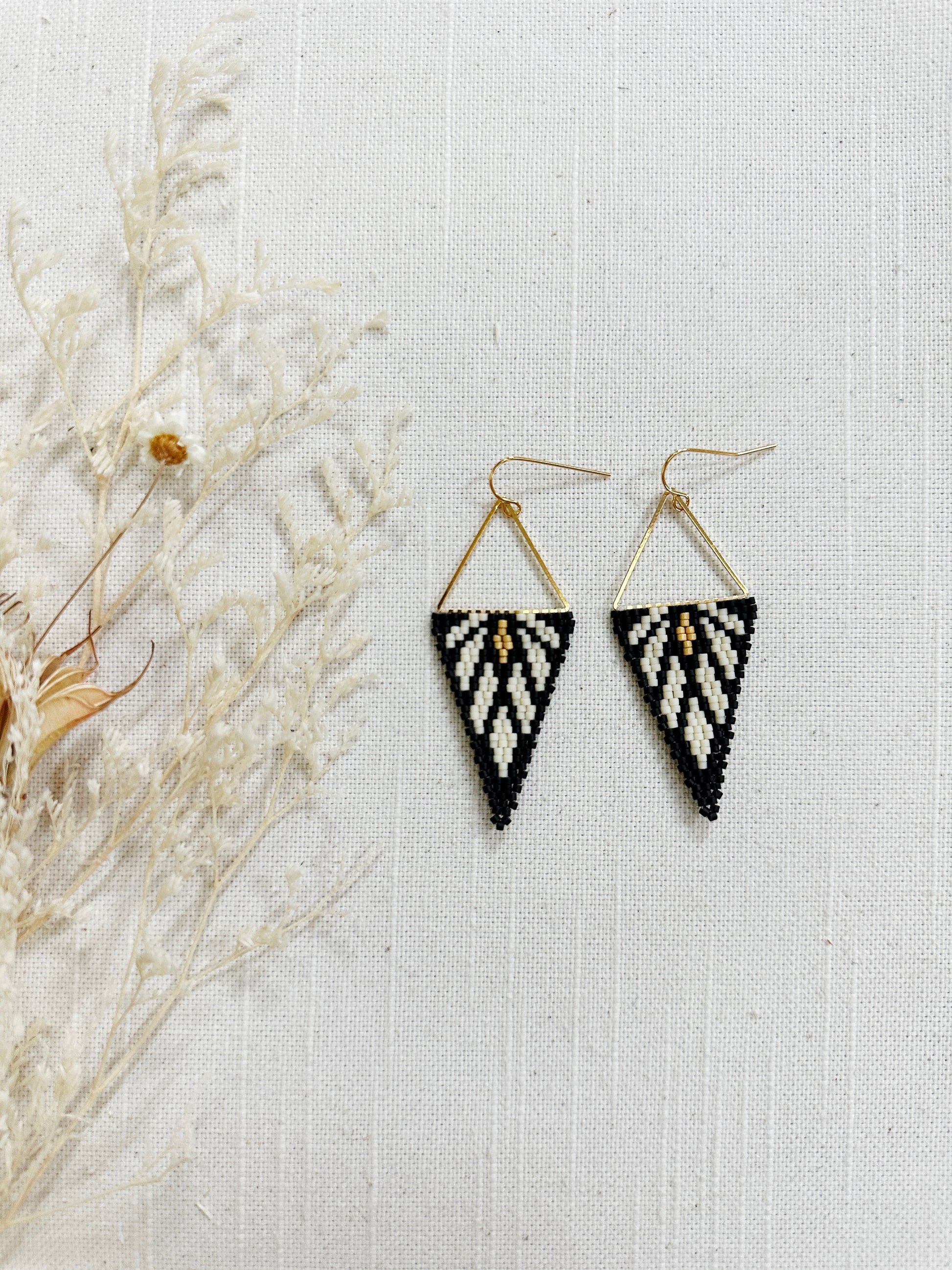 Beaded floral design in a drop pattern on a gold plated trianlge.