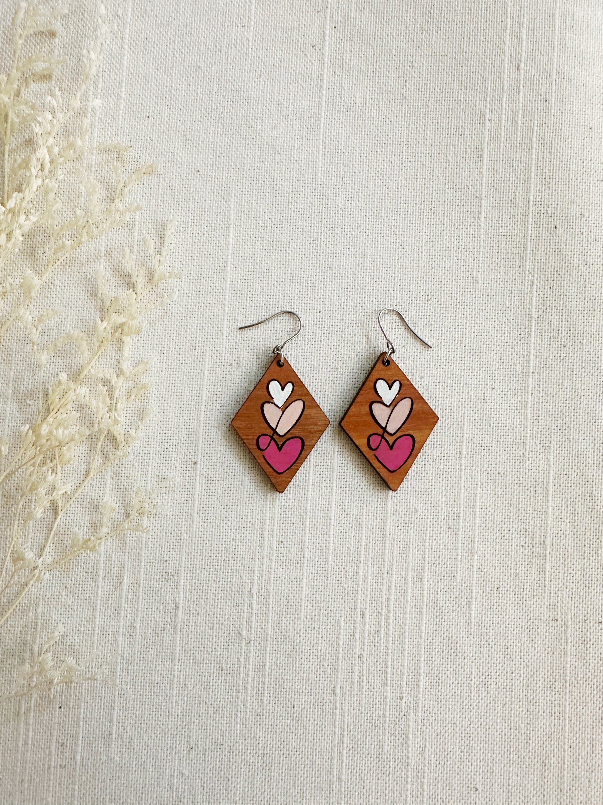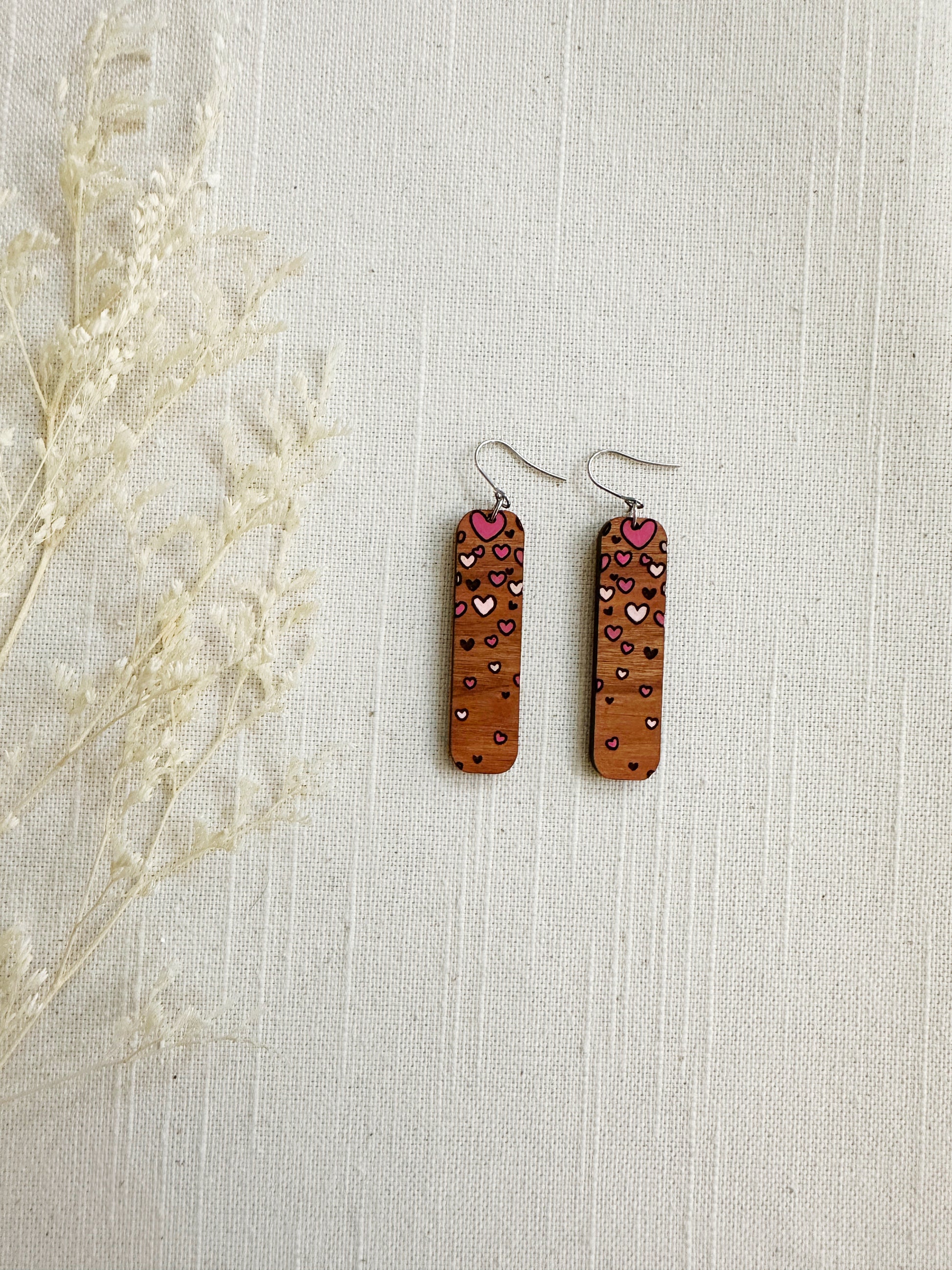 Add some love (and style) to your outfit with these Valentines Wood Dangles! Hand-painted with care, these cherry veneer plywood lightweight earrings will add a touch of whimsy to any look. Perfect for Valentine's Day or any day you want to show off your unique style!