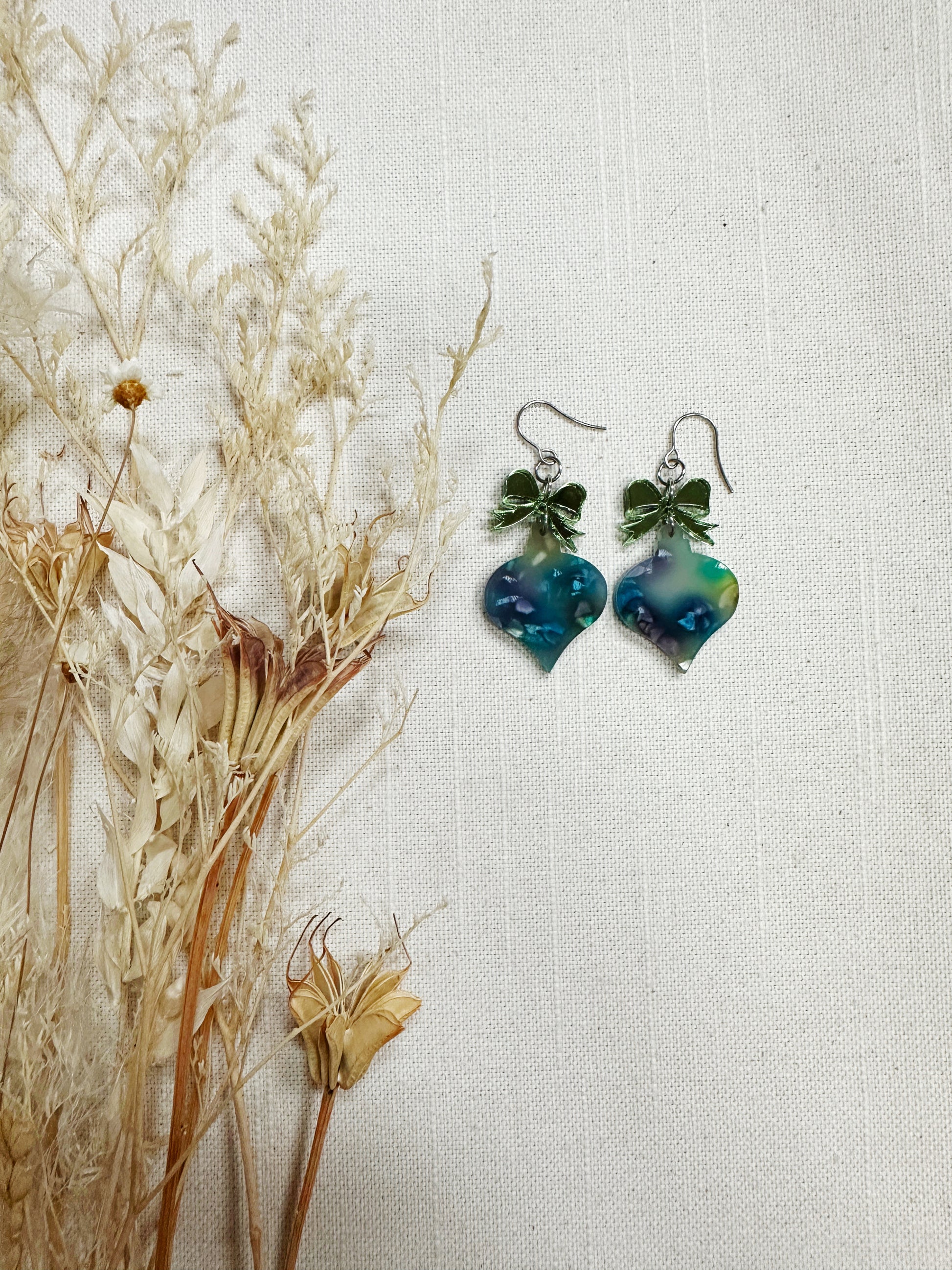 Green Glitter Tree & Green Pearl Tree with 316L Stainless Steel Earhook