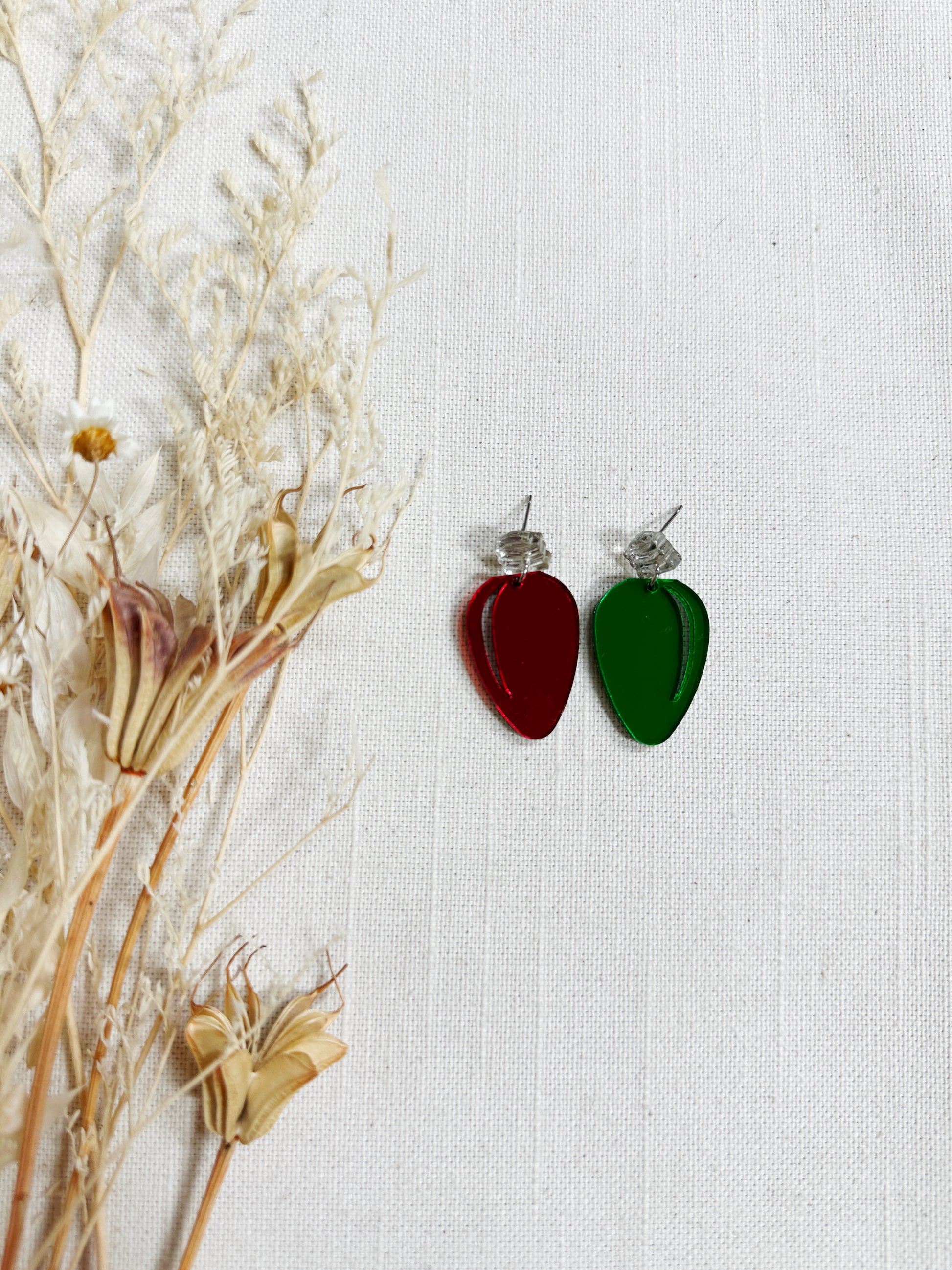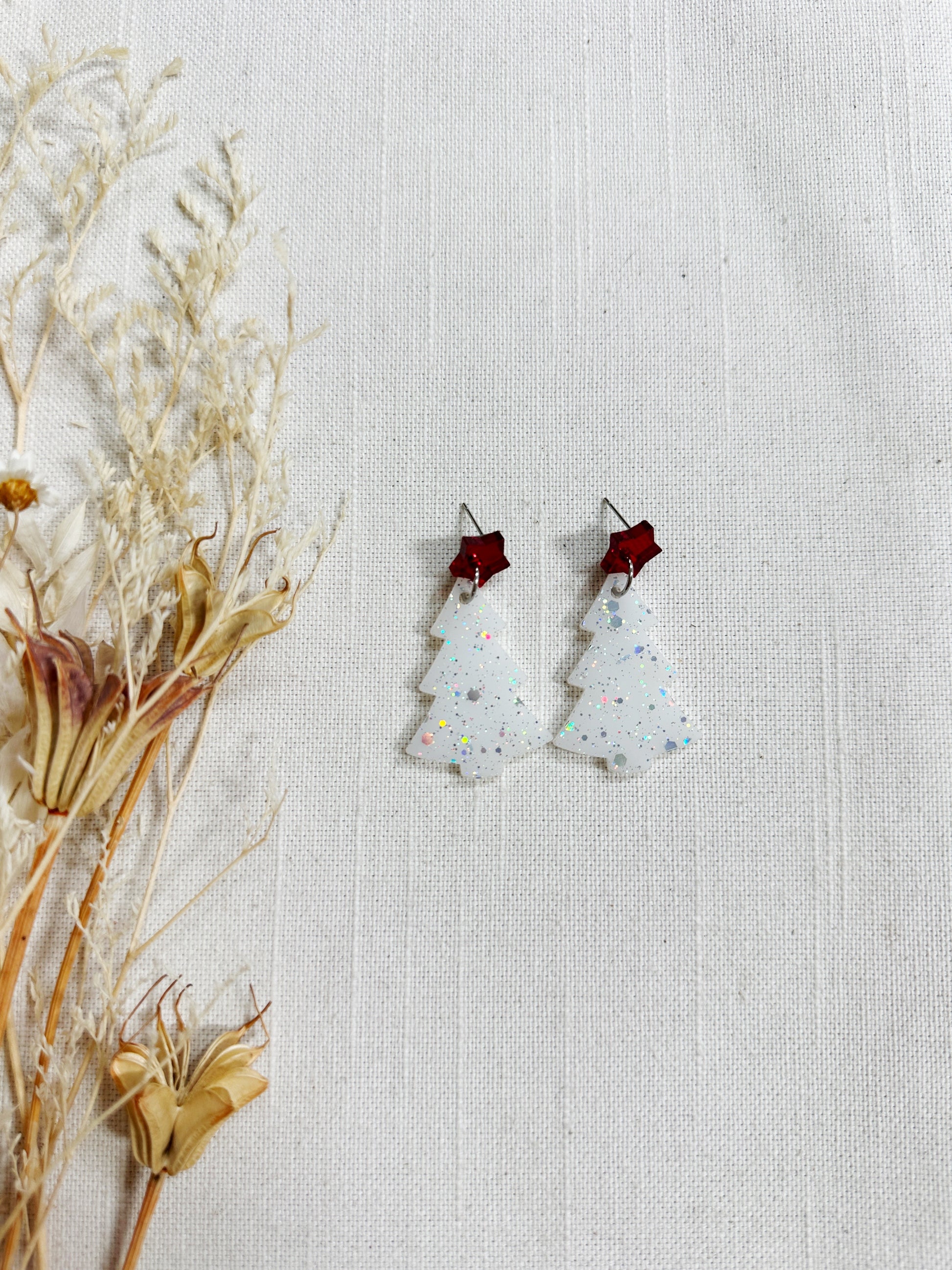 White with Glitter with Dark Red Mirror Star Stainless Steel post. Acrylic items secured with stainless steel jump ring.