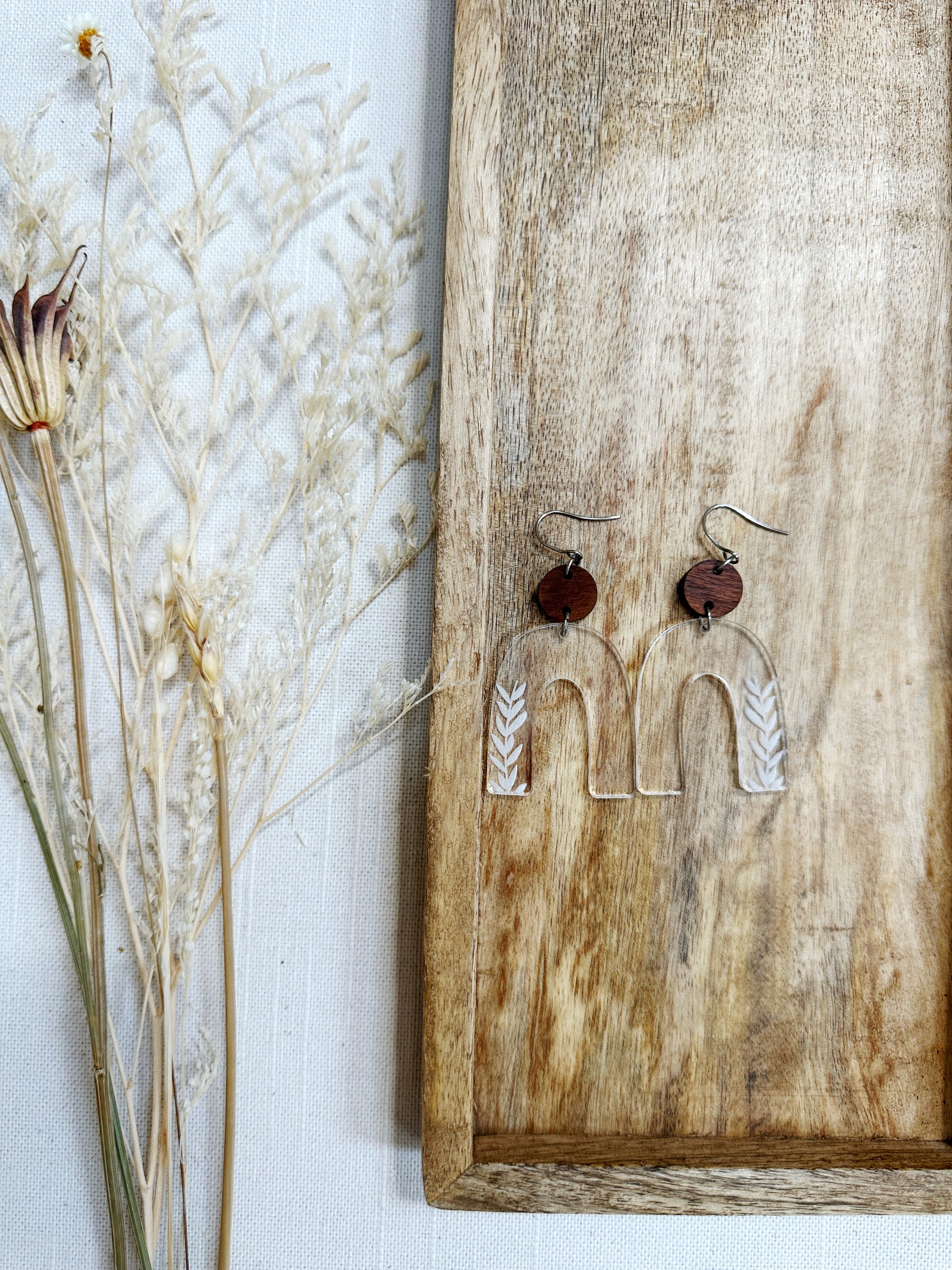 Keep dry and hang or lay flat when not wearing. Spot clean any wood and acrylic items.