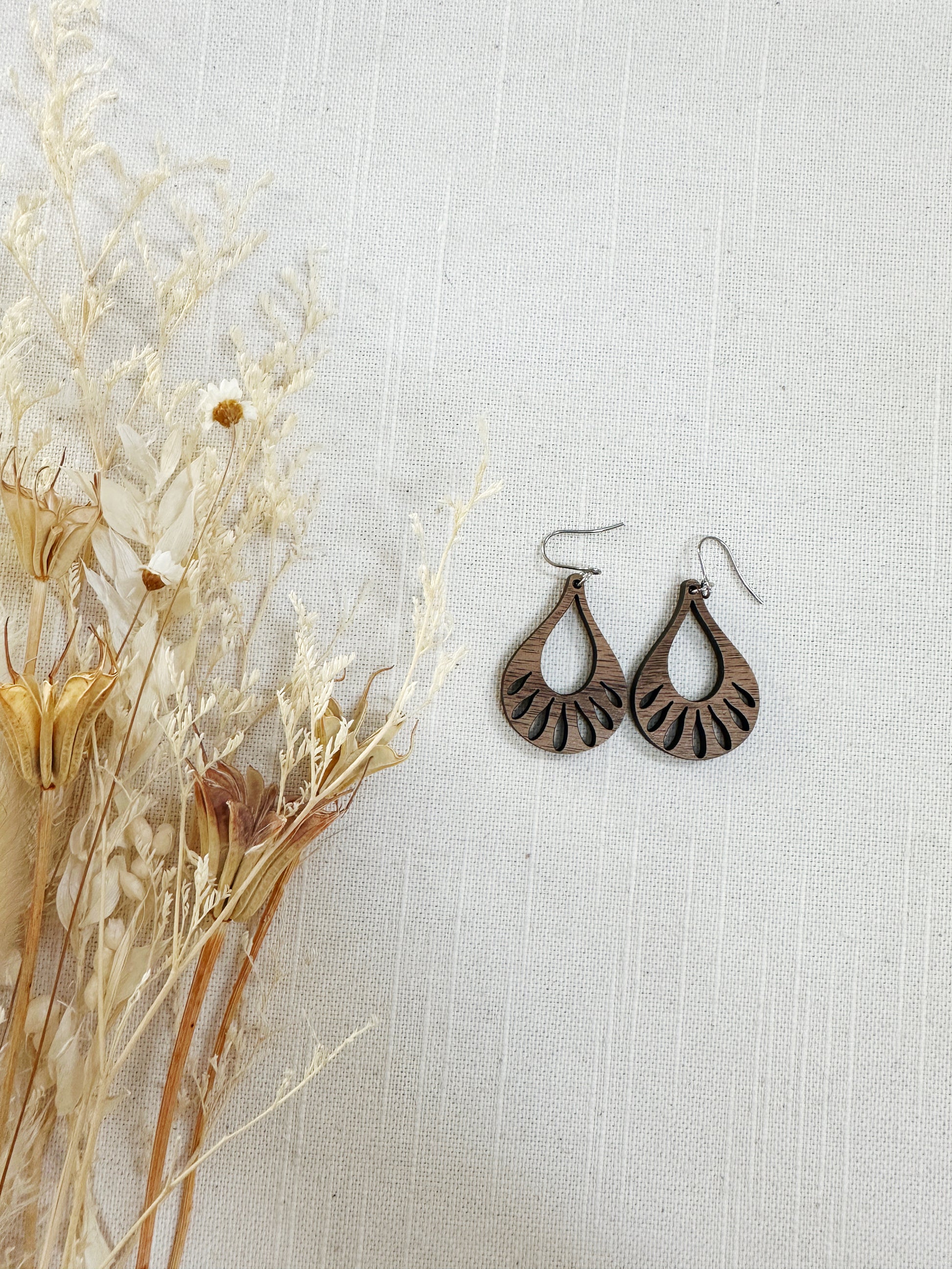 Small and lightweight these walnut wood earrings are perfect for everyday wear.